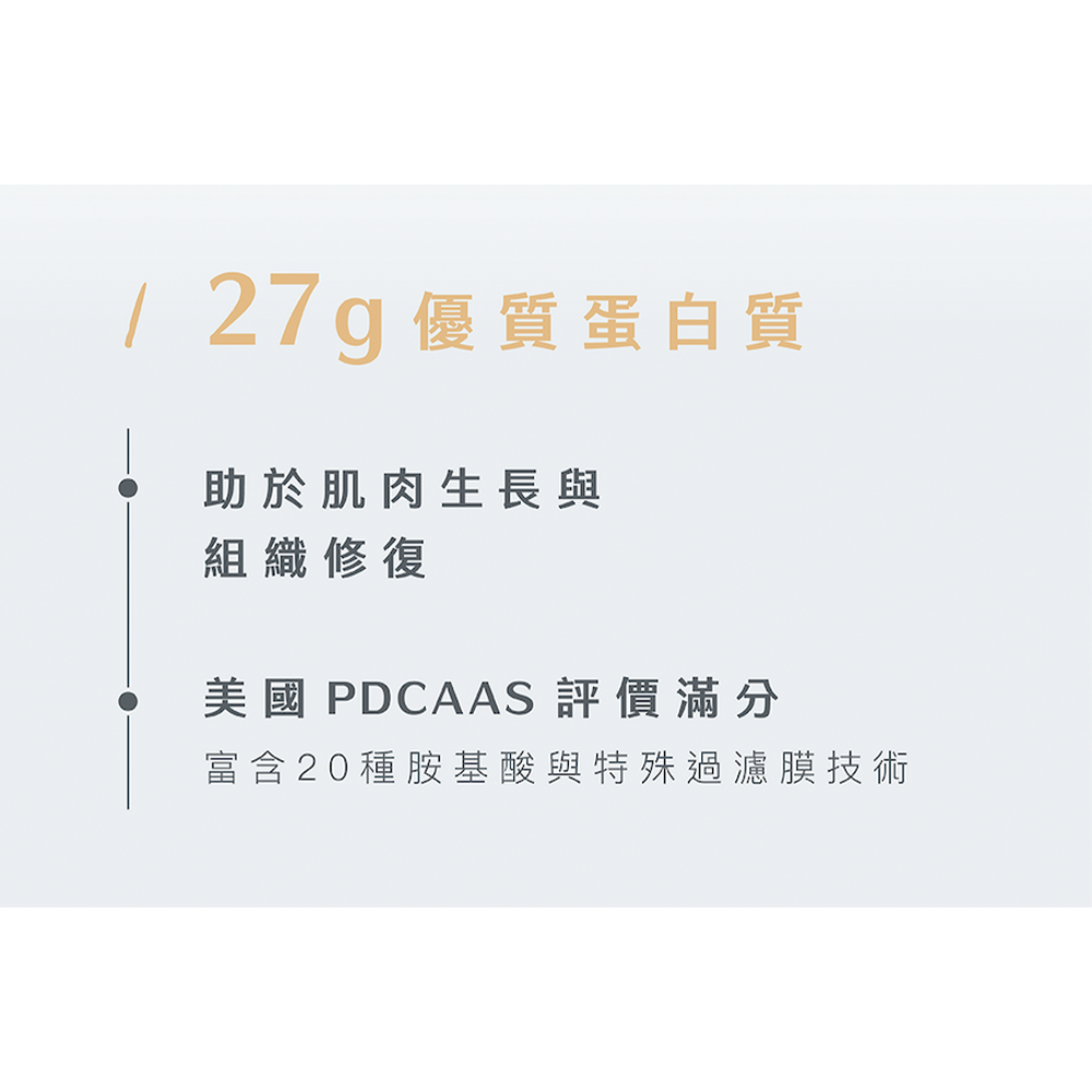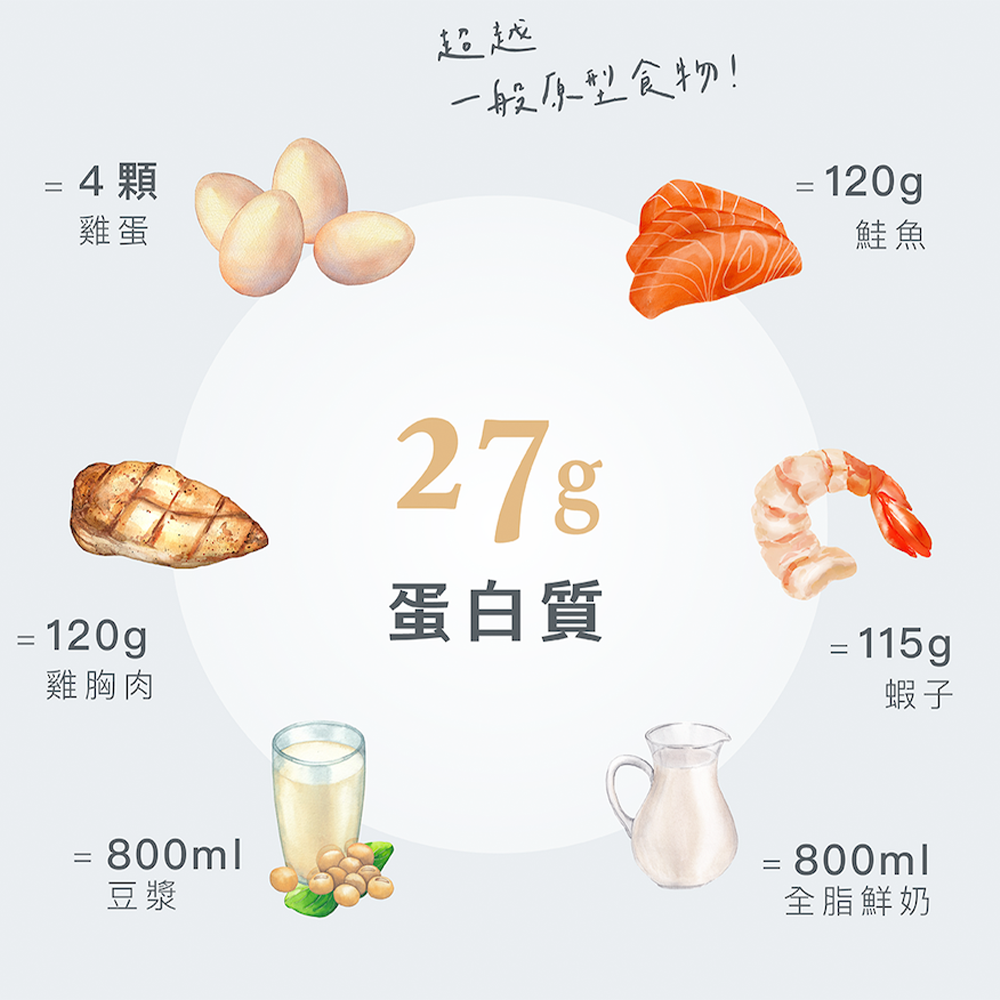 - BODY GOALS水解乳清蛋白每包含有27克蛋白質,有助於肌肉的生長與修復,讓您運動後迅速補充所需