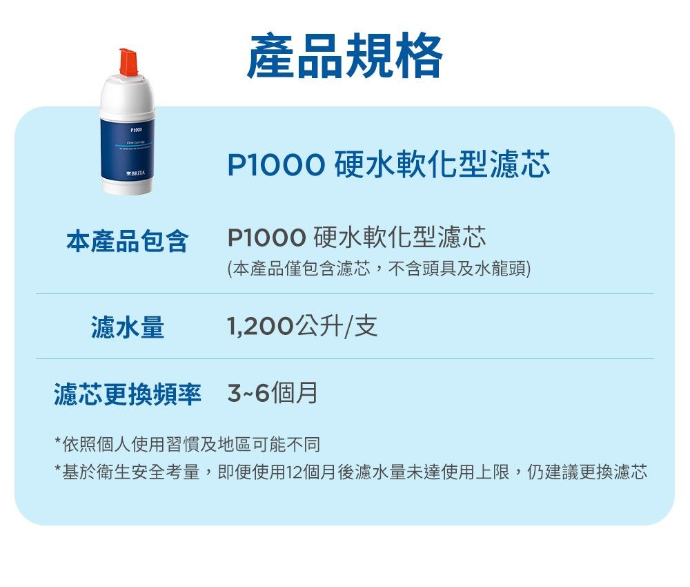 - BRITA P1000濾芯,讓您輕鬆享受純淨好水,提升飲水品質。