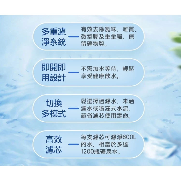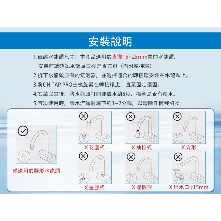 - 龍頭式設計簡便安裝,無需工具輕鬆完成,即時享受純淨好水,提升飲水品質。