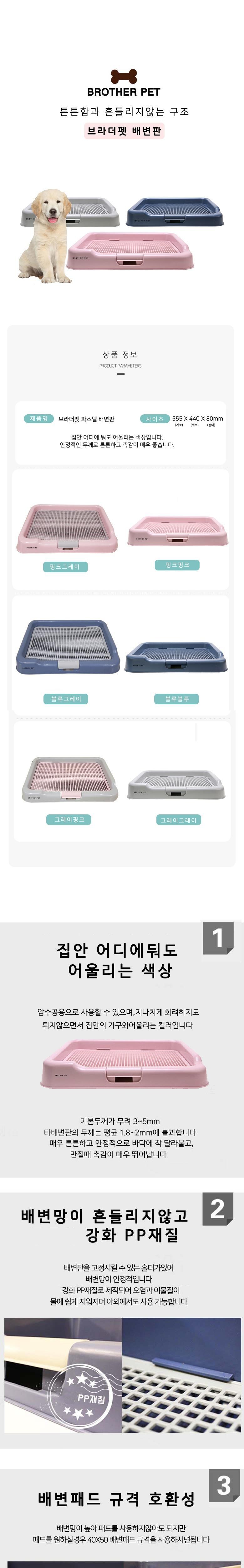 BROTHER PET寵物廁所墊採用堅固且不晃動的結構設計,給予寵物穩定的如廁環境。粉彩尿盆顏色柔和,能與各種居家風格完美搭配,公母犬皆適用。加厚的盆體材質,觸感極佳且不易滑動。尿網採用強化PP材質,易於清洗,可搭配40X50規格的尿墊使用,保持乾淨衛生。高網格設計,有效防止寵物沾染髒汙,讓清潔更省力。
