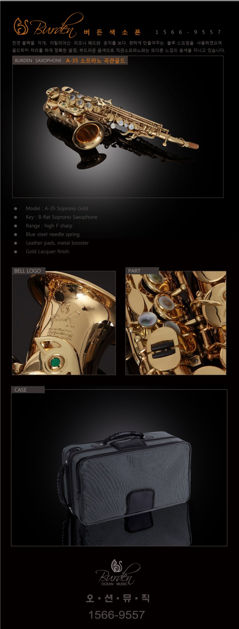 Burden 伯頓彎曲薩克斯風 A35,採用精湛工藝與優質材料製作,呈現卓越音色與舒適手感。金漆塗裝處理賦予樂器優雅外觀,同時確保音準精確、音色柔和,帶來與直管高音薩克斯風截然不同的音樂魅力。義大利Pisoni墊片與藍鋼針彈簧的應用,提升了氣密性與靈敏度,使指法操作更為流暢。天然黑珍珠貝的點綴,不僅美觀,更提供舒適的觸感。無論是專業演奏者還是音樂愛好者,都能在這款薩克斯風上找到屬於自己的音樂表達。
