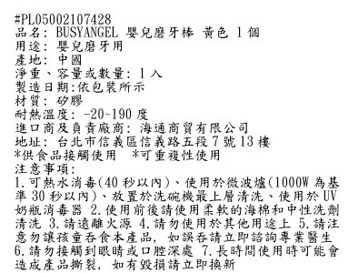 BUSYANGEL嬰兒磨牙棒採用柔軟矽膠材質,專為舒緩寶寶長牙不適設計。可愛的手腕配戴設計,防止掉落,保持清潔。耐高溫,易於消毒,確保寶寶使用安全。此款磨牙棒不僅能滿足寶寶的啃咬需求,還能促進手眼協調發展。黃色外觀,吸引寶寶注意力,讓寶寶愛不釋手。讓BUSYANGEL嬰兒磨牙棒陪伴寶寶度過愉快的長牙期。