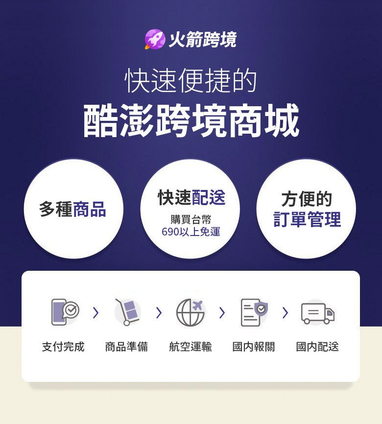 | 運費 | 免運 - 宅配:火箭速配產品訂單價格超過$490免運費 - 超取(全家、7-11):火箭速配產品訂單價格超過$490免運費 - 暫不支援離島配送 |