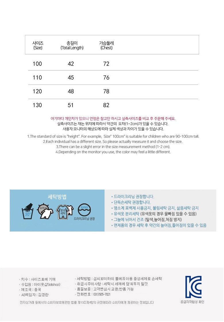 - 兒童尺寸(尺碼): 120號
