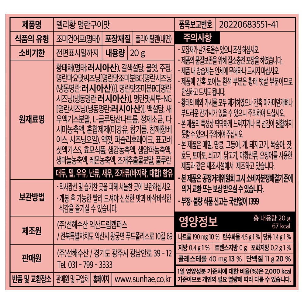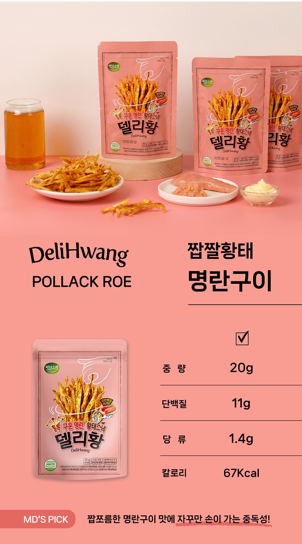 Badasori Ttok Ttok 烤明太子黃太魚脆片 Deli黃 明太子烤魚味, 20g, 2個