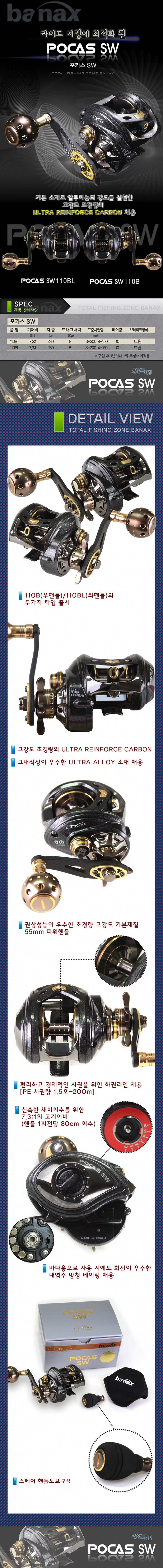 Banax POCASSW110BL釣魚捲線器專為輕型鐵板釣法設計,採用高強度超輕量碳纖維材質,兼具鋁的強度與輕巧的特性。7.3:1的超高齒輪比,讓您快速收線,掌握釣魚先機。耐鹽水防鏽培林即使在海水中使用也能保持順暢運轉。55mm強力手把提供穩固的握持感,半線設計方便經濟,適用PE線。附贈備用手把頭,更添便利性。