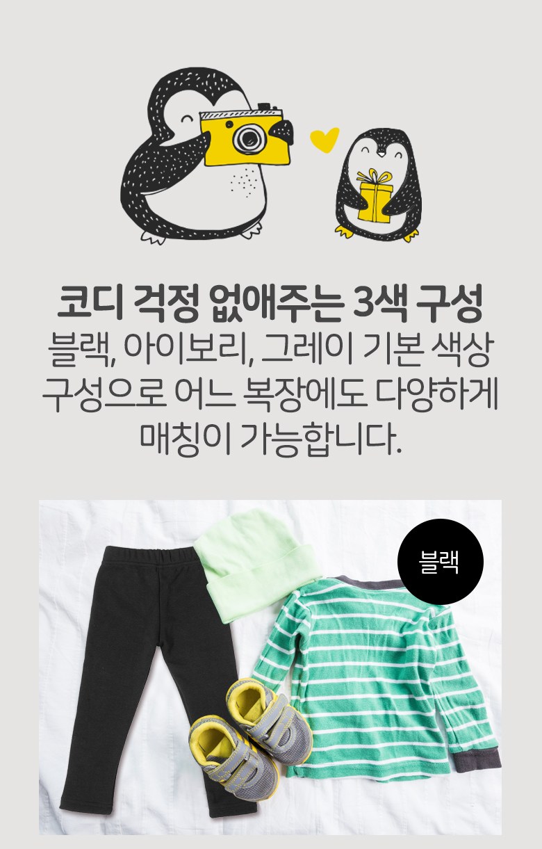 - 黑色、灰色和象牙白三色組合,輕鬆搭配各式服裝,為孩子打造多樣化的時尚造型。