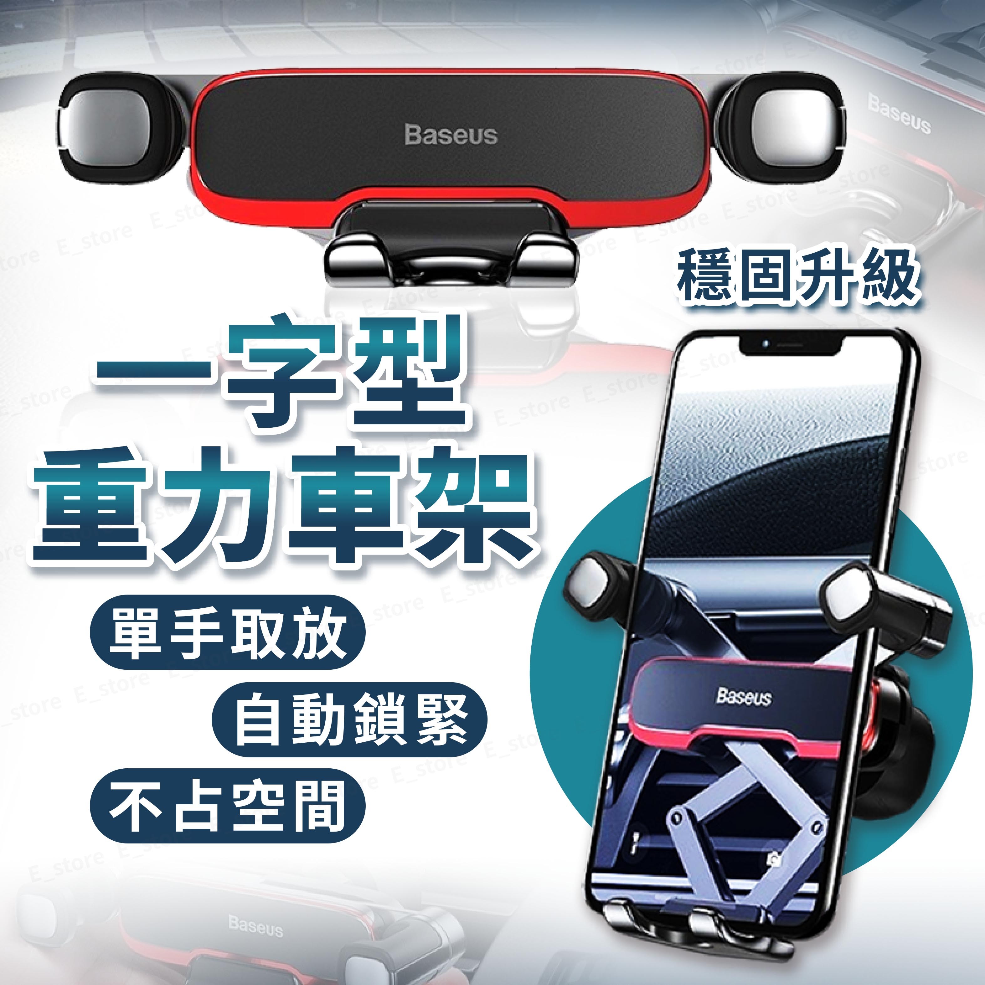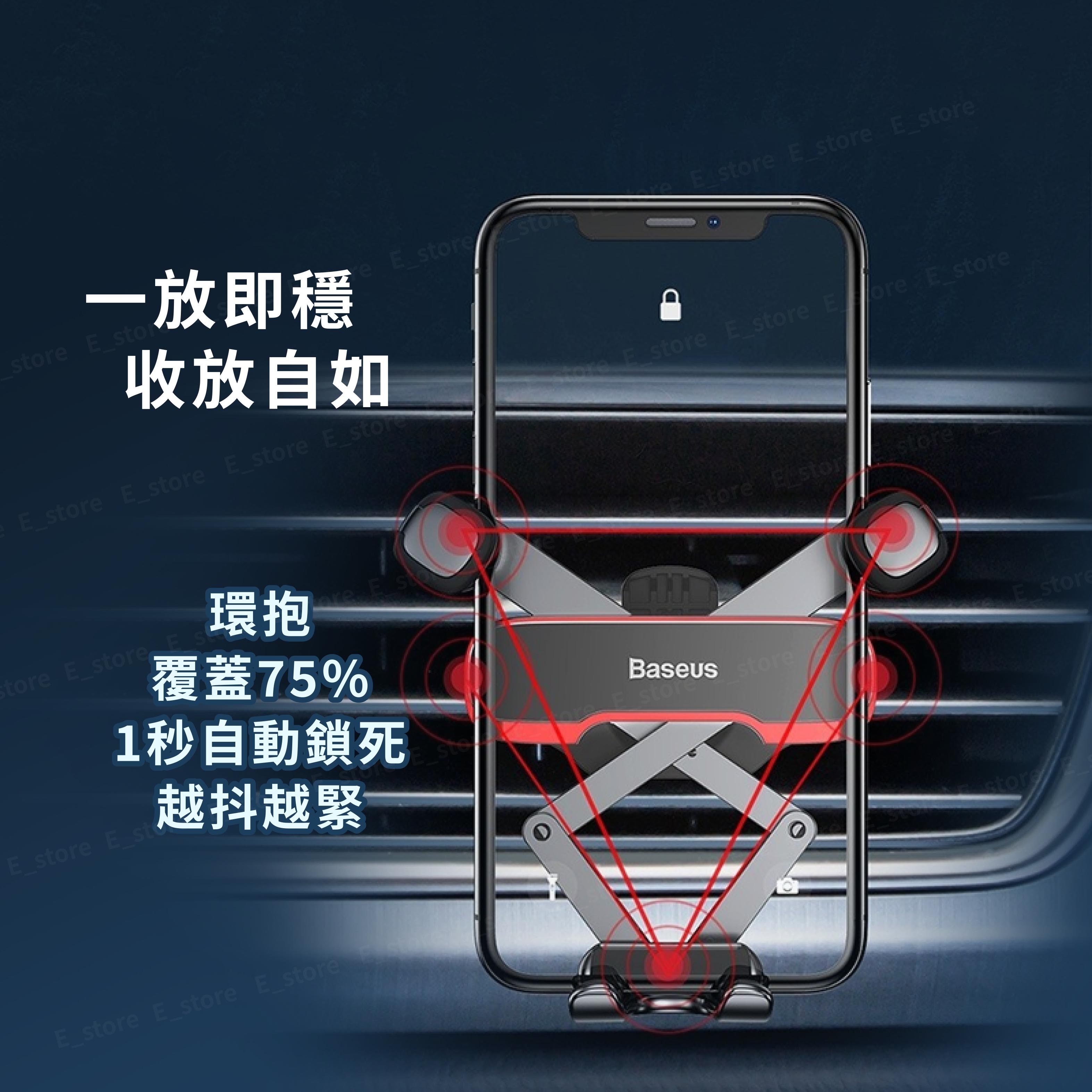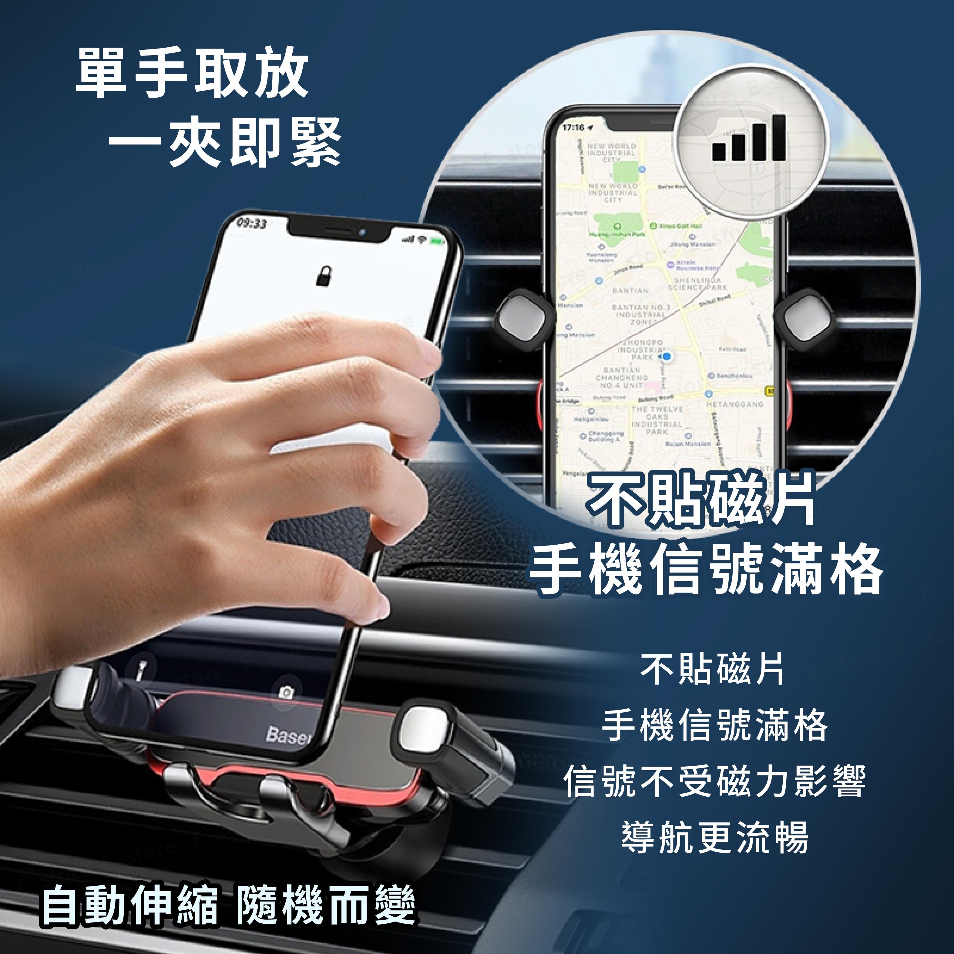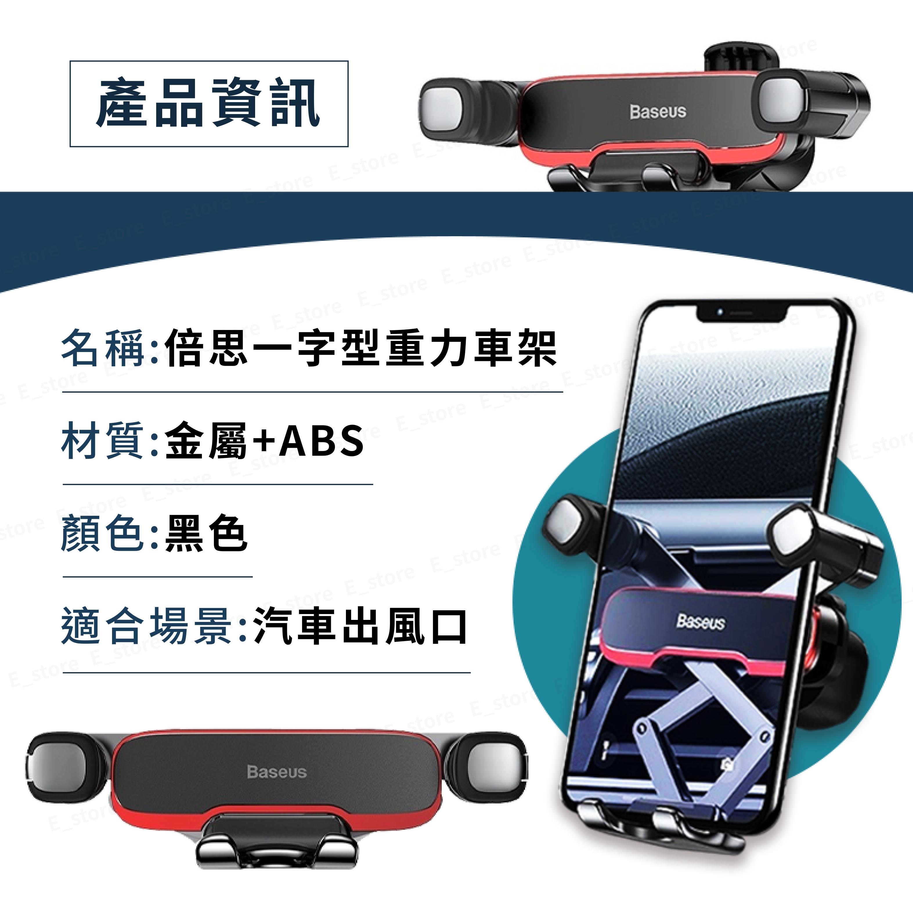 Baseus 倍思 一字型橫向重力車架,以簡約的黑色設計,完美融入您的愛車內裝。採用金屬與ABS塑膠材質,堅固耐用且輕巧,僅重100g。利用重力聯動原理,單手即可輕鬆操作,穩固夾持您的智慧型手機。360度旋轉設計,讓您隨時調整最佳視角,導航更方便。適用於汽車出風口,安裝簡便,讓您在行車過程中安全便捷地使用手機。