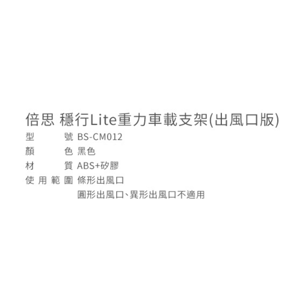 Baseus 倍思 穩行Lite重力車用支架,為您的行車生活帶來更多便利與安全。採用重力感應設計,單手即可操作,手機放入自動夾緊,穩固不掉落。精巧輕便,不佔空間,適用於多種出風口,安裝簡便。讓您在行車過程中,輕鬆使用導航、接聽電話,提升駕駛安全。黑色外觀簡約時尚,為您的愛車增添一份質感。