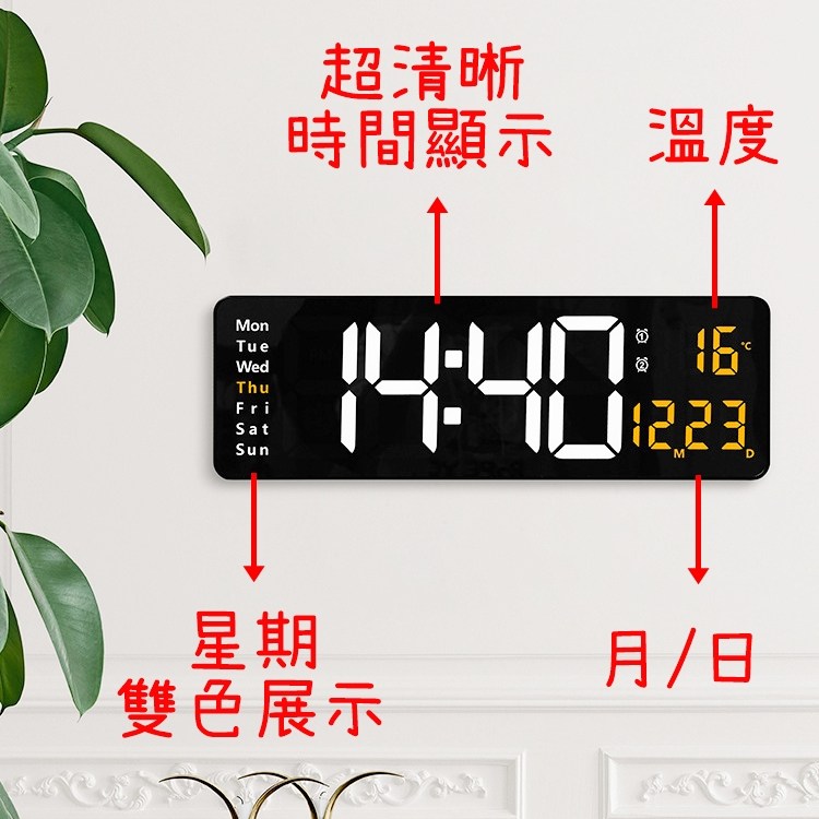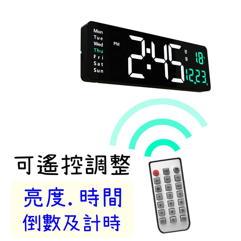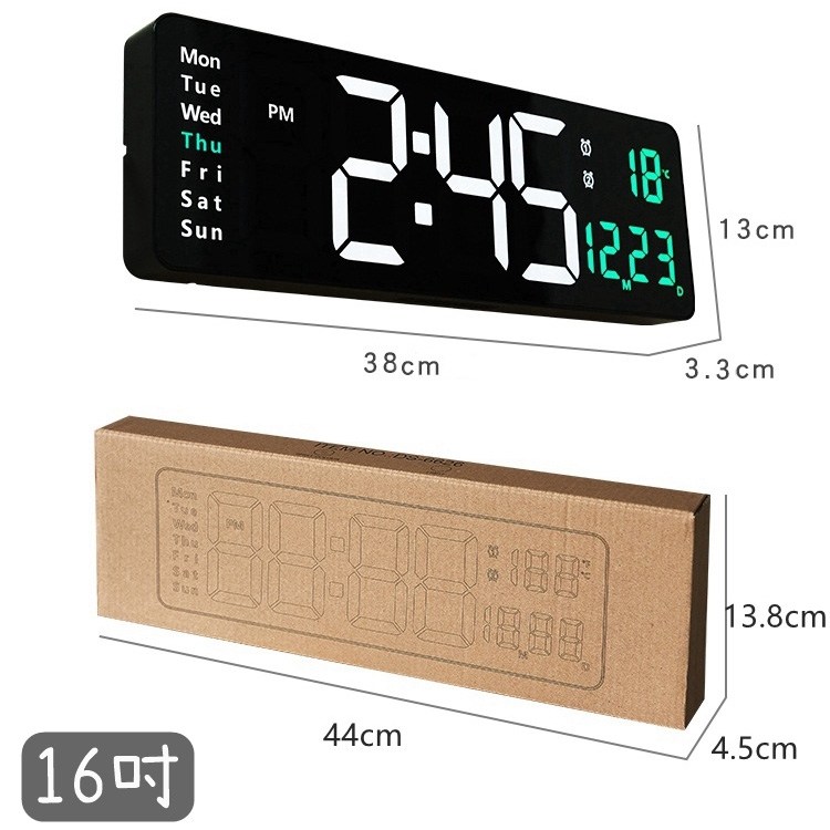 這款 Beautylife LED 電子數字掛鐘,以其清晰的 16 吋大螢幕顯示,讓您無論在客廳、臥室或辦公室,都能輕鬆讀取時間、日期和溫度。數位顯示不僅提供精確的時間,還能顯示星期幾,方便您掌握每日行程。此掛鐘還具備計時和倒數功能,適用於各種情境,例如運動、烹飪或工作。透過遙控器,您可以輕鬆調整亮度、時間和其他設定,打造最舒適的使用體驗。簡約時尚的設計,不僅實用,更能提升居家品味,是您不可或缺的生活好幫手。
