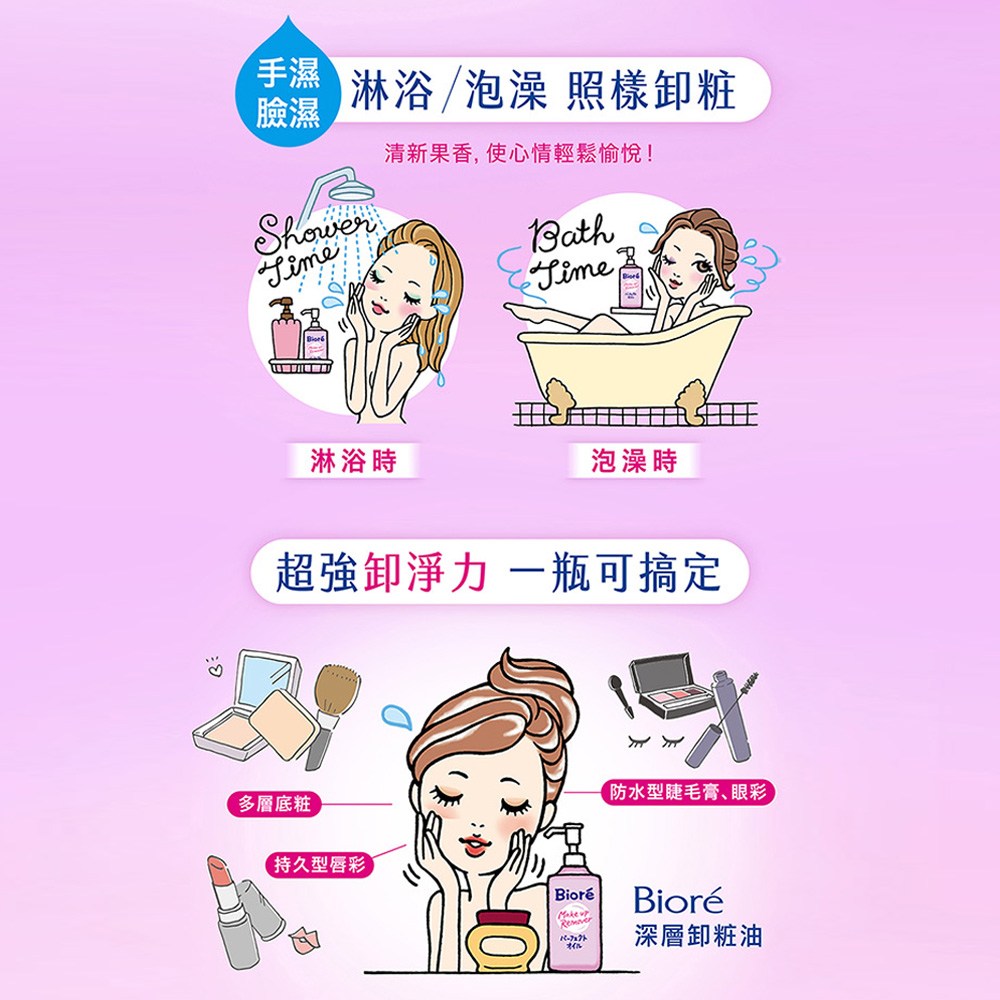 - 溫和配方不刺激肌膚,敏感肌也能安心使用,卸妝同時呵護您的嬌嫩肌膚,維持健康狀態。