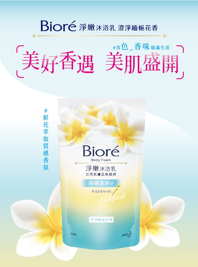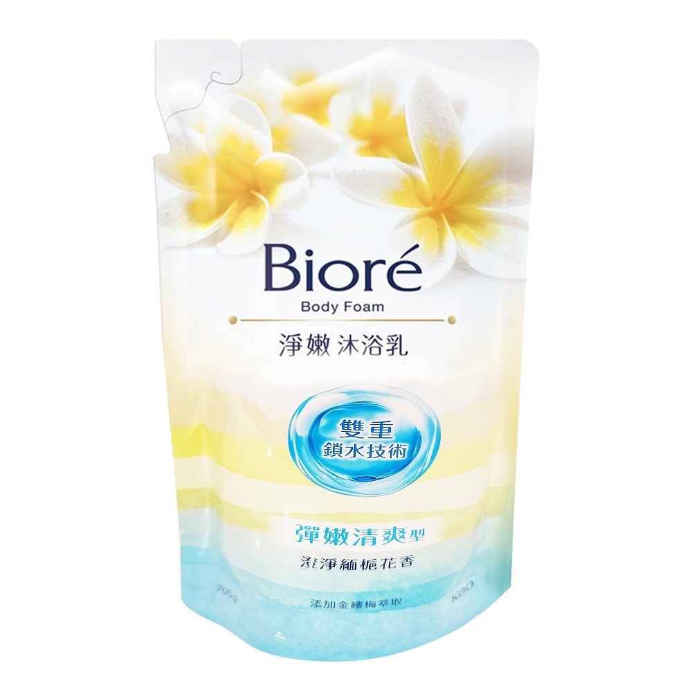 Biore 蜜妮淨嫩沐浴乳補充包,蘊含緬梔花香,為您帶來彈嫩清爽的沐浴體驗。700g大容量補充包,經濟實惠,適合所有膚質。這款沐浴乳不僅能溫和潔淨肌膚,還能提供保濕效果,讓您的肌膚在沐浴後依然柔嫩光滑。緬梔花香氛清新怡人,讓您在沐浴時享受愉悅的感官體驗。Biore 蜜妮,值得信賴的品牌,為您帶來安心舒適的沐浴時光。