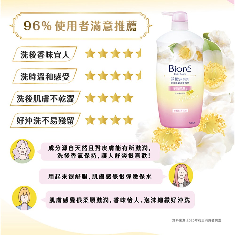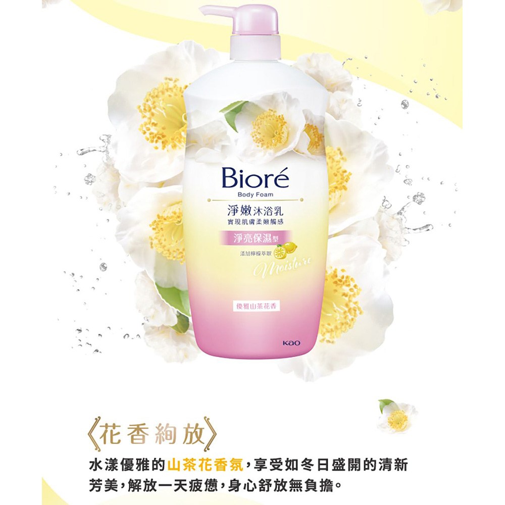 Biore 蜜妮淨嫩沐浴乳,山茶花香氛,給您淨亮保濕的沐浴體驗。這款沐浴乳蘊含優雅的山茶花精華,讓您在沐浴時享受怡人的香氣,同時溫和潔淨肌膚。其淨亮保濕配方,能有效去除污垢,使肌膚水嫩透亮,告別乾燥粗糙。1000g大容量包裝,全家適用,讓您每天都能擁有柔嫩光滑的健康美肌。Biore 蜜妮,給您安心信賴的品質保證。