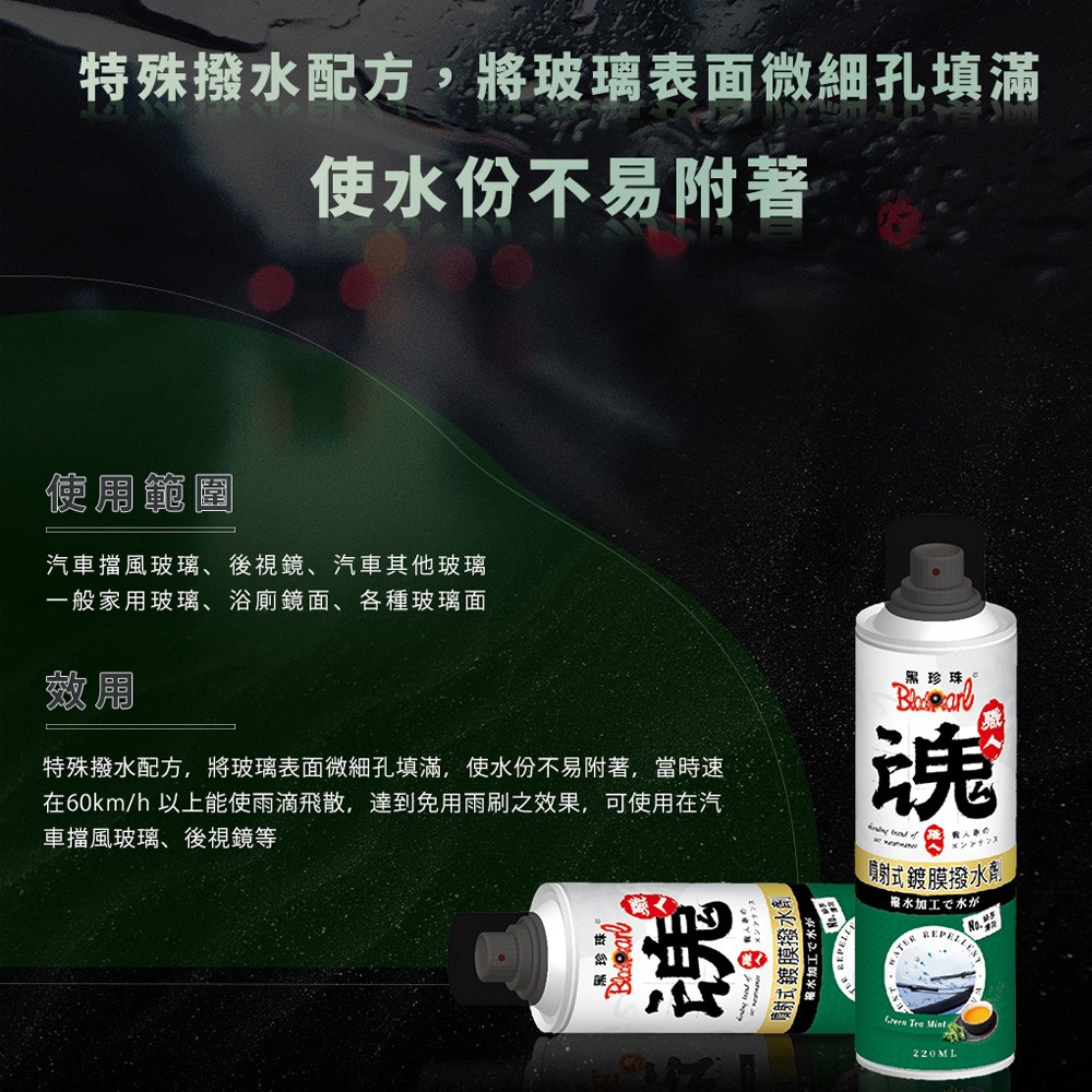 - 黑珍珠撥水劑,讓您輕鬆擁有清晰視野,雨天行車更安全。