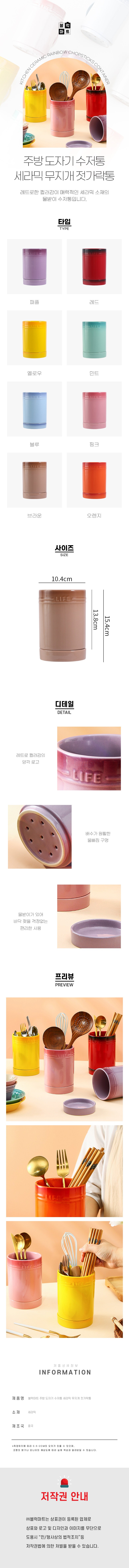 這款BeurreokMateu廚房陶瓷彩虹餐具筒,採用復古色彩的陶瓷材質,為您的廚房增添一抹亮色。獨特的彩虹配色,讓餐具收納也能充滿樂趣。餐具筒底部帶有瀝水孔和接水盤,能有效防止檯面潮濕,保持廚房清潔乾爽。無論是收納筷子、湯匙或其他廚房小工具,這款餐具筒都能讓您的廚房井井有條。尺寸適中,不佔空間,是廚房收納的理想選擇。