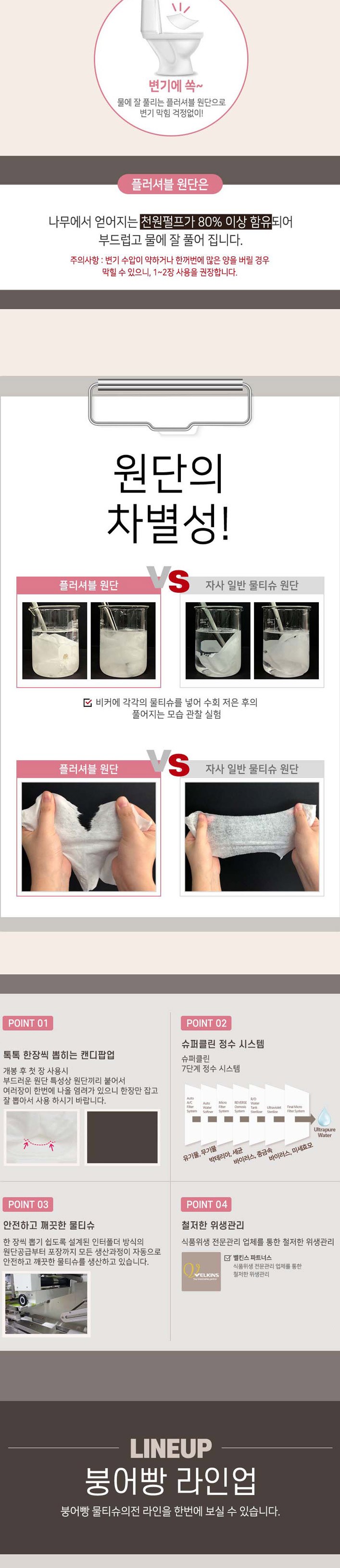 Bungeobbang 掀蓋式濕式衛生紙,採用柔軟親膚材質,並添加保濕成分,溫和潔淨肌膚。易溶於水的可沖散材質,用後可直接丟入馬桶,方便又衛生。掀蓋式設計,有效防止水分流失,保持濕巾濕潤。全家大小皆適用,給您帶來潔淨清爽的舒適體驗。弱酸性配方,溫和不刺激,呵護您的肌膚。