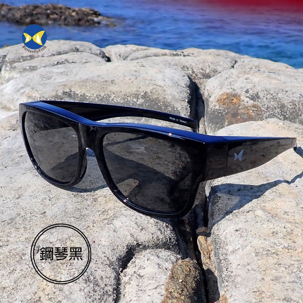 ButterFly Fish 蝴蝶魚 OTG 外掛式套鏡 超輕鏡框 寶麗萊偏光鏡片 鏡面處理20%透光率 鏡框無毒烤漆, 14.8 x 4.5 x 0.8cm, 1個, 鋼琴黑