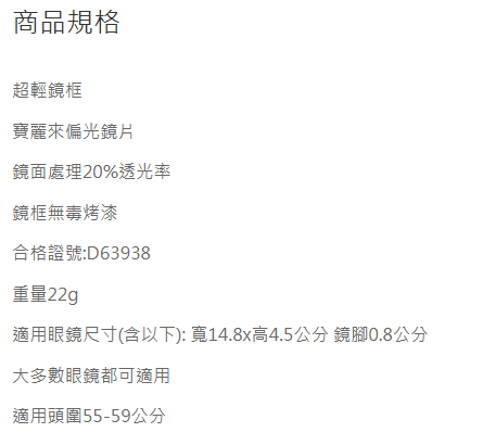 - 鏡片種類: 寶麗來偏光鏡片