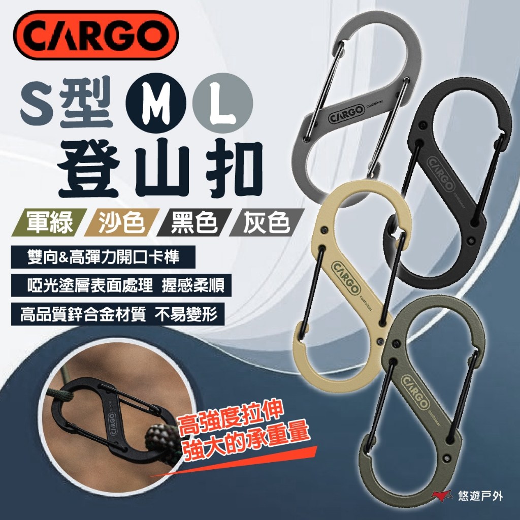 CARGO container S型登山扣(M) 黑色 鋅合金材質 57 x 27 x 3.5 mm 重量13.2g 承重100kg, 1個