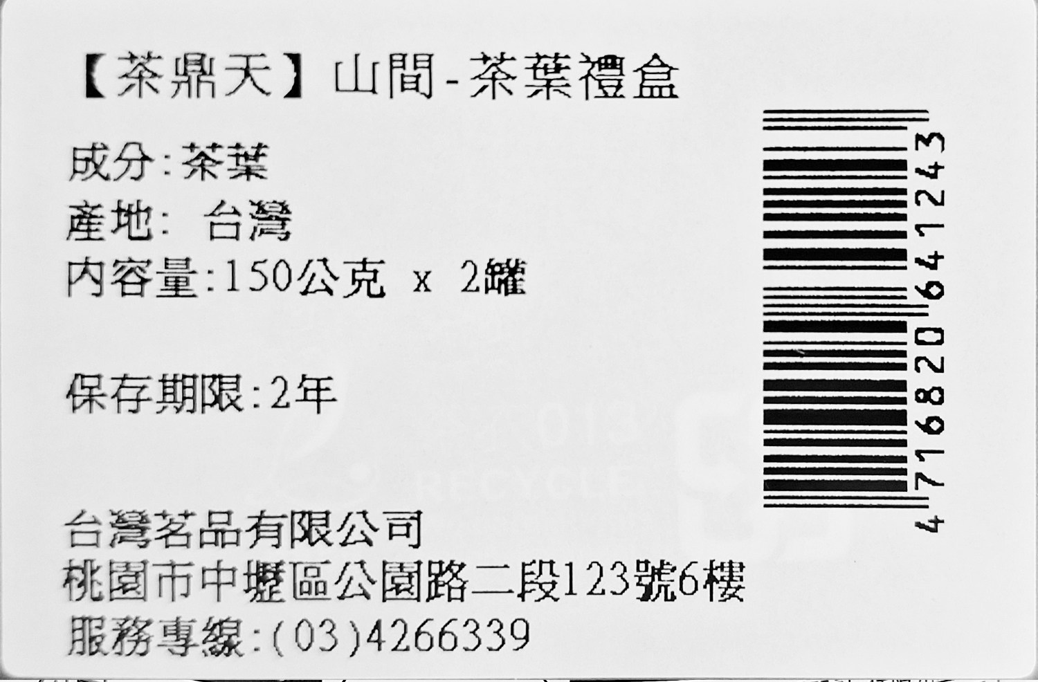 | 投保產品責任險字號 | 07字第062212A00210號 | 成分 | 茶葉 |