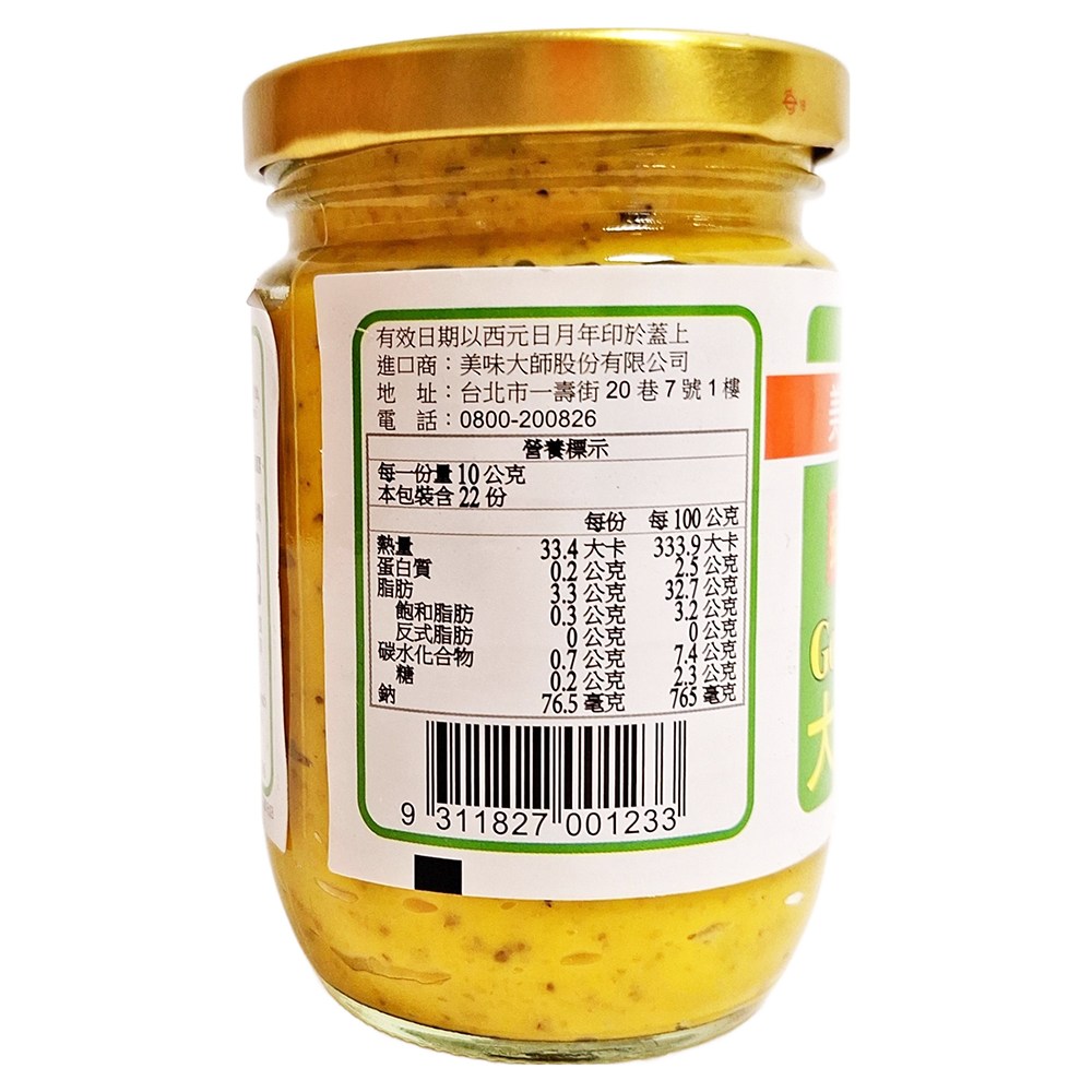 美味大師強蒜味大蒜麵包醬,讓您在家也能輕鬆做出香氣四溢的蒜香麵包!這款麵包醬採用精選大蒜及多種香料調製而成,蒜味濃郁,口感豐富,只需簡單塗抹於吐司或法式麵包上,放入烤箱烘烤幾分鐘,即可享用。除了製作蒜香麵包,這款麵包醬也可用於烹調其他料理,為您的菜餚增添風味。每罐220g,讓您隨時都能享受美味的蒜香滋味。