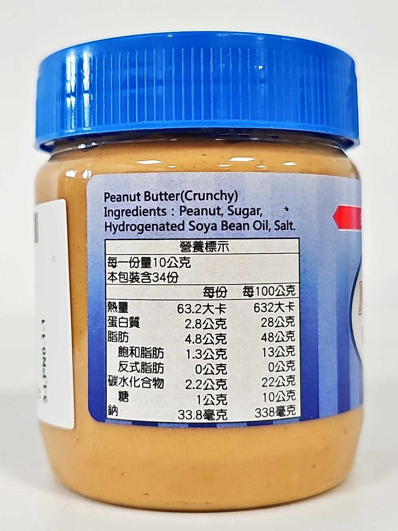 - 340g罐裝花生醬,份量適中,方便家庭使用,隨時享受花生醬的美味與便利。