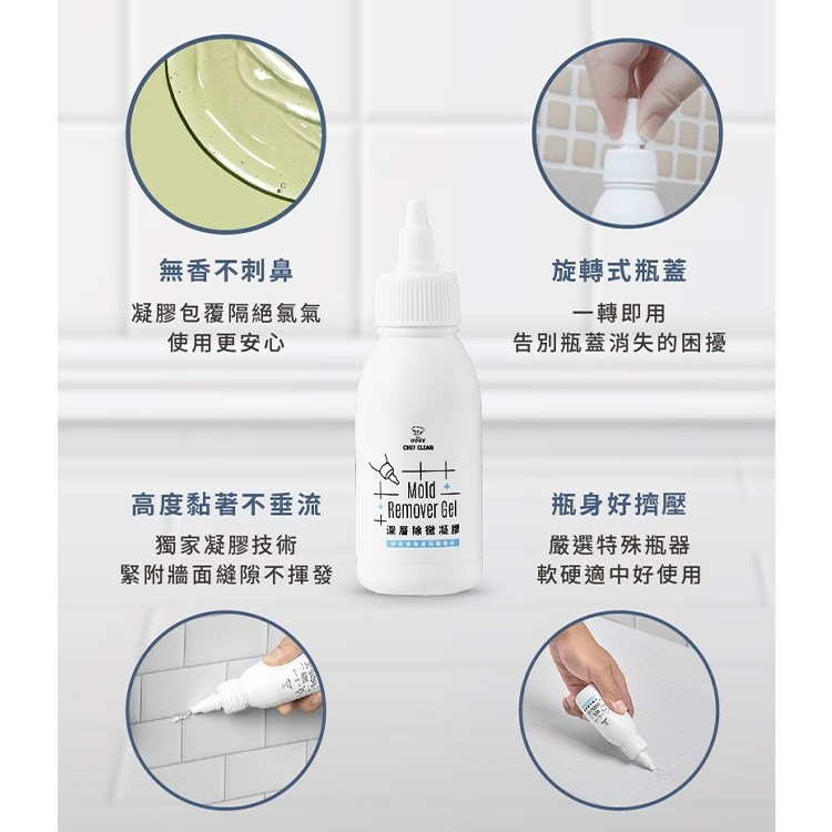 - 獨特尖嘴設計深入細縫,輕鬆擠出凝膠,精準對付霉菌,不沾手更方便,清潔不再是難事。