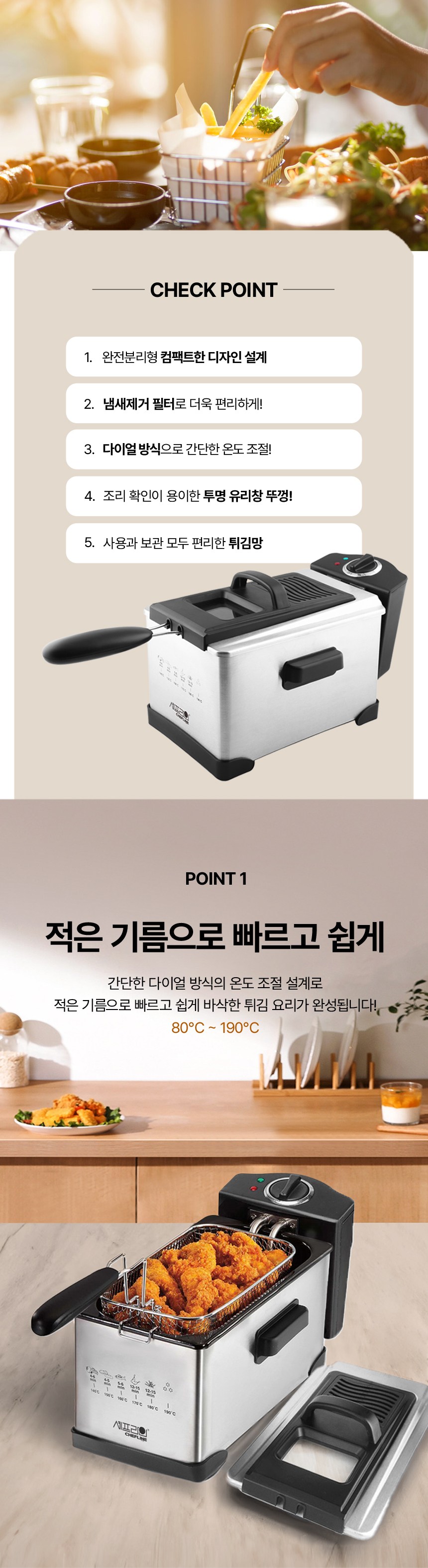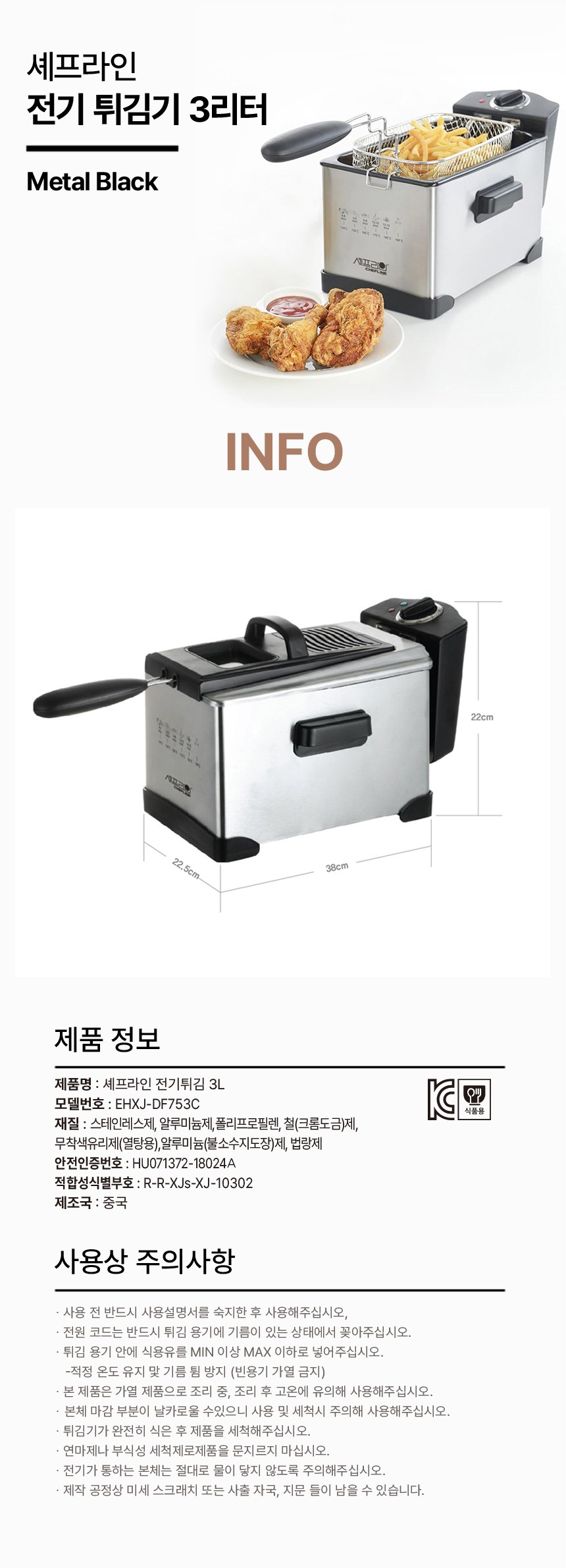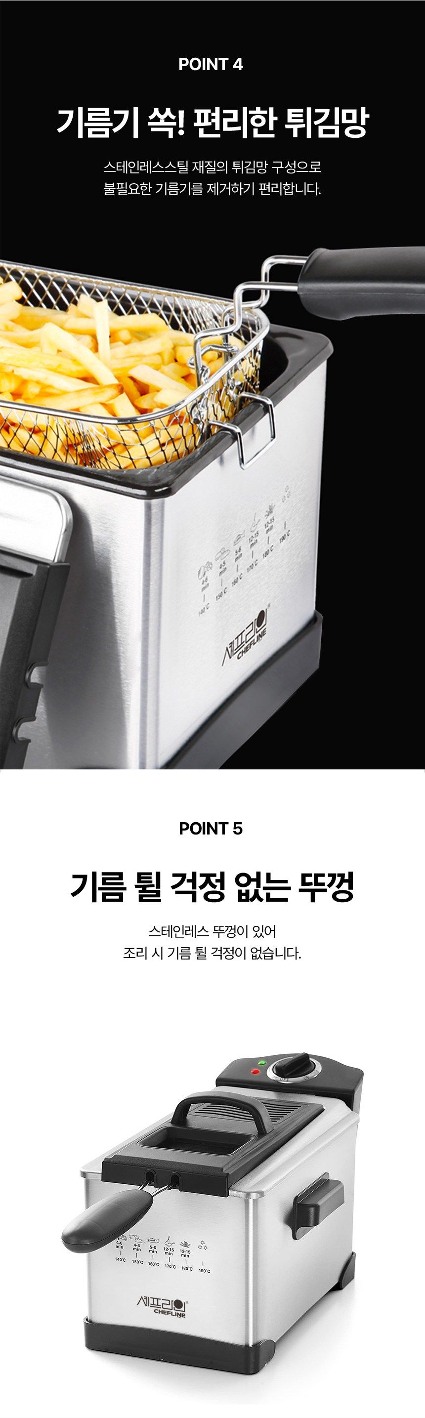 CHEFLINE 電炸鍋 3L,讓您在家也能輕鬆享受美味的油炸料理。透過簡單的旋鈕式溫度調節,用少量油就能快速完成酥脆的炸物,減少油膩感。完全分離式結構,清洗更方便衛生。透明玻璃窗設計,讓您隨時掌握烹飪過程,內置除臭過濾器,減少油煙異味。不鏽鋼炸網方便去除多餘油脂,讓您享受健康美味的油炸食品。