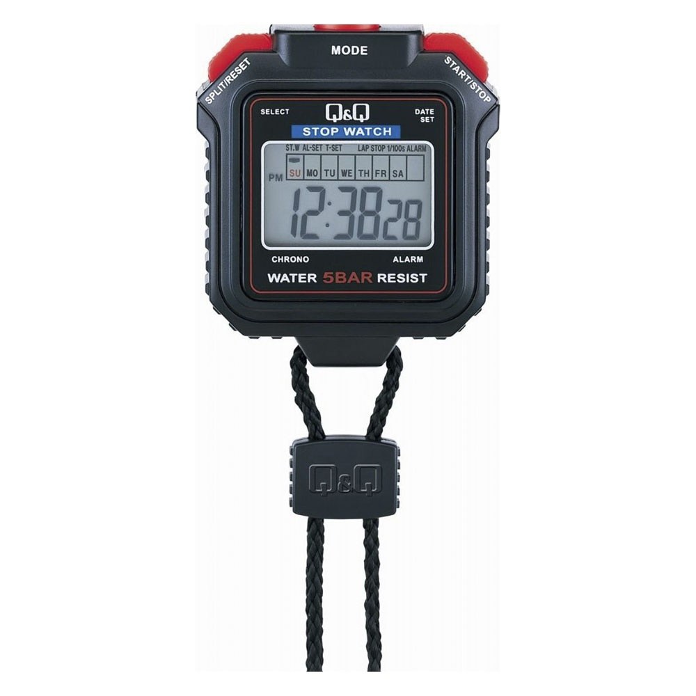 Q&Q 西鐵城專業電子碼錶,是您精準計時的可靠夥伴。搭載了高精度的1/100秒計時功能,並可儲存多達5組分段時間記錄,完美適用於專業訓練與賽事分析。具備5BAR生活防水等級,無論在雨天或汗流浹背的環境下皆能安心使用,展現其卓越的耐用性。大尺寸的數位螢幕與直覺化的按鍵佈局,讓您在運動中也能輕鬆操作與讀取數據。除了核心的計時功能,更內建了時間、日曆及鬧鐘模式,一機多用,提升日常便利性。無論您是專業教練、運動員或需要精確計時的裁判,這款碼錶都能滿足您的嚴格要求。