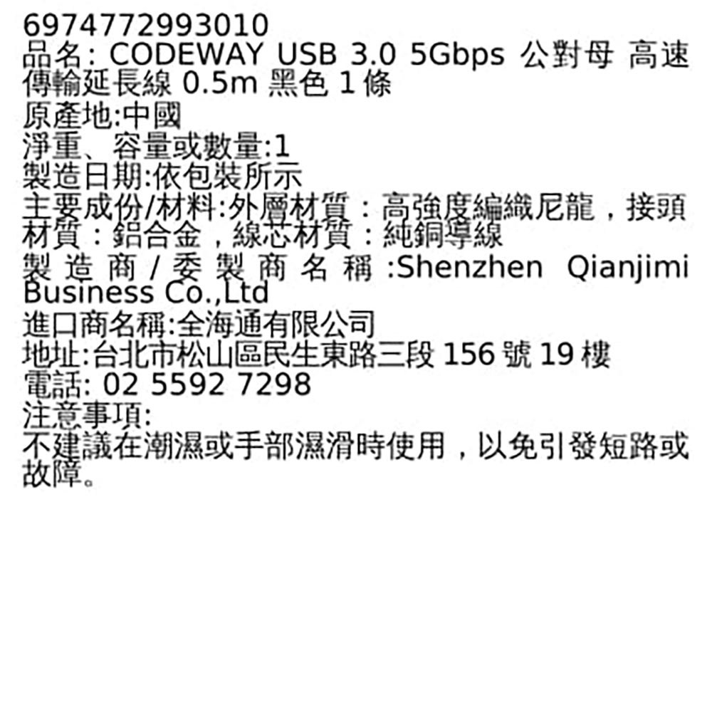 - CODEWAY USB 3.0延長線傳輸速度高達5Gbps,比傳統USB 2.0快40%,提升效率。
