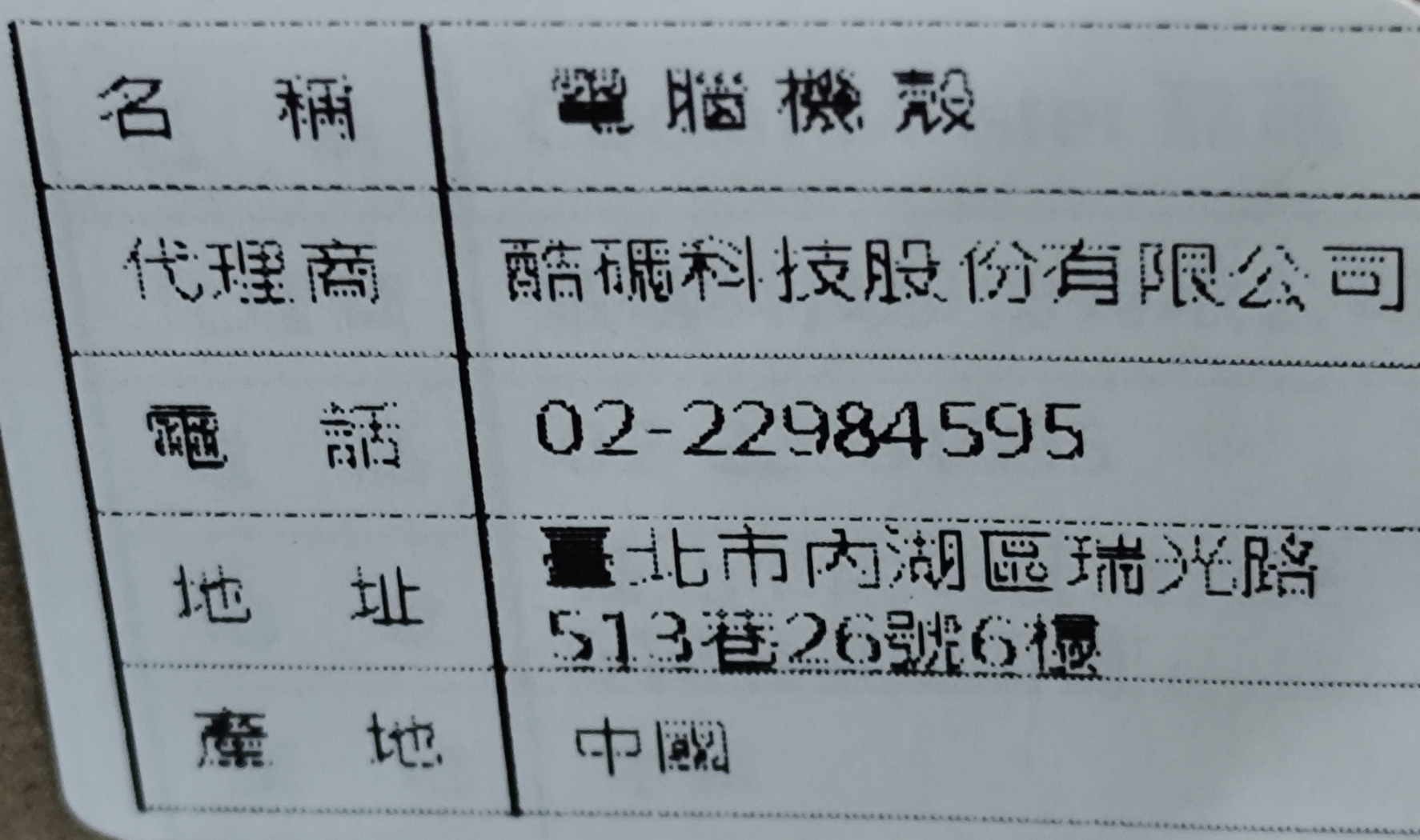 | 名稱及地址 | 酷澎股份有限公司 台灣台北市信義區信義路五段7號13樓之一 |