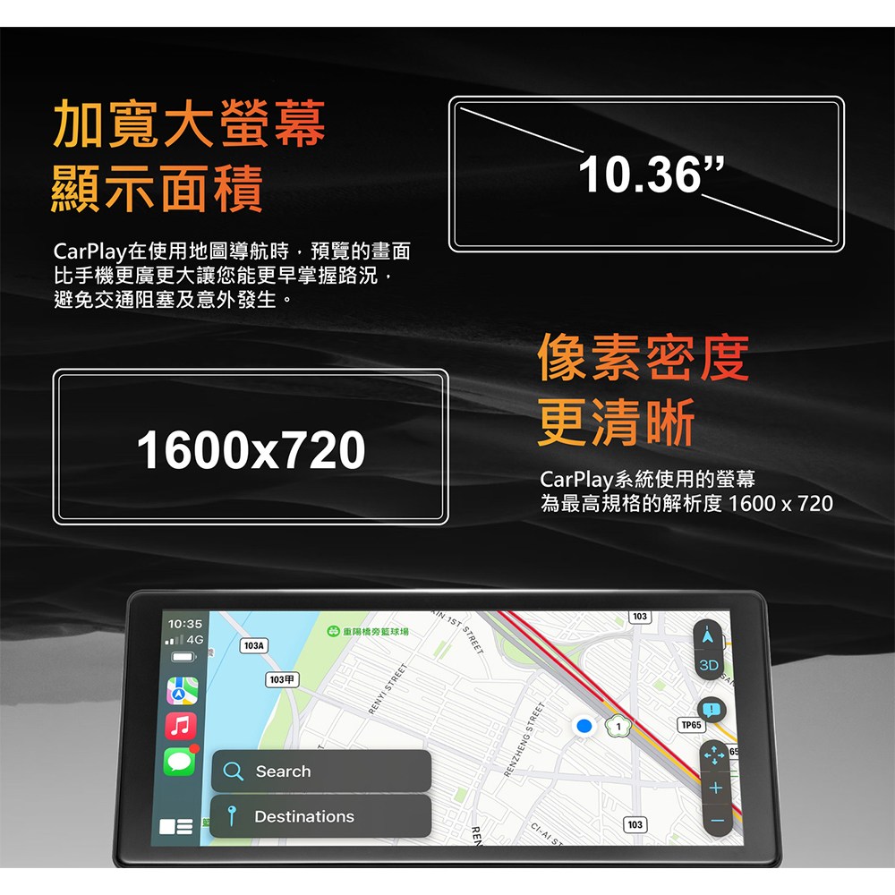 - 10.36吋大螢幕提供更廣闊視野,CarPlay導航畫面更大,讓您及早掌握路況,避免交通阻塞。