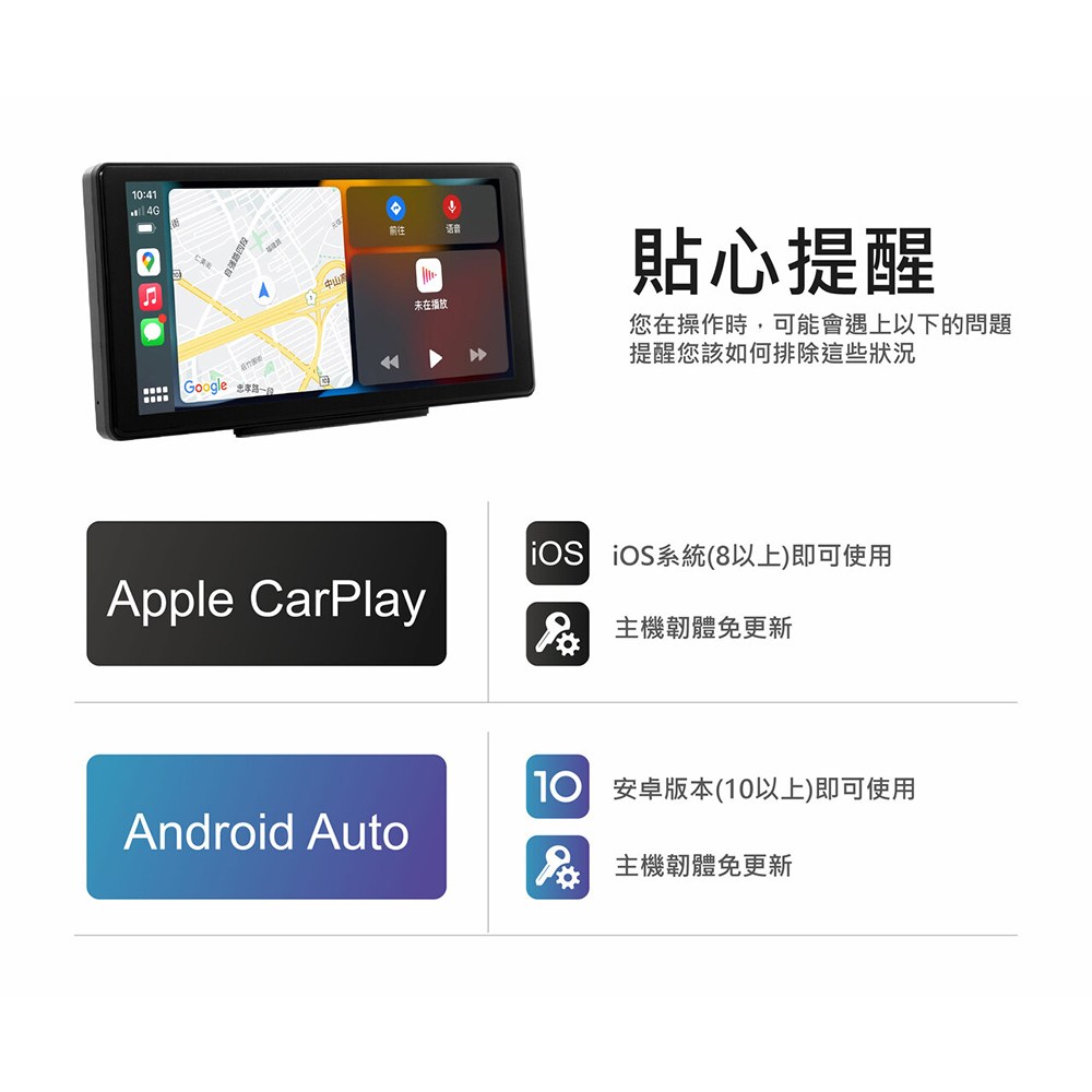 - 免拆機即可輕鬆安裝,升級主機免更新,讓您享受CarPlay與Android Auto帶來的便利功能。