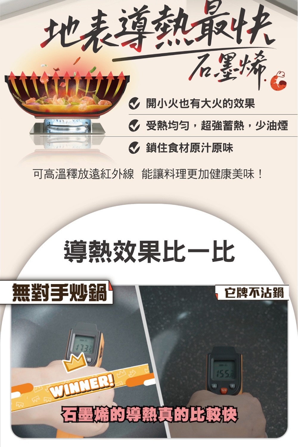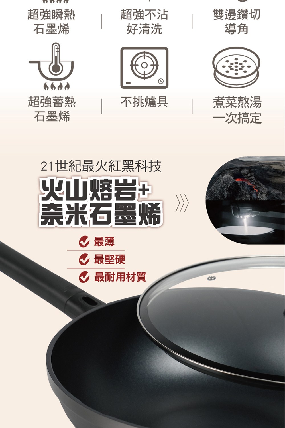 - 導熱迅速且均勻,縮短烹調時間,保留食材原汁原味,美味佳餚輕鬆上桌。
