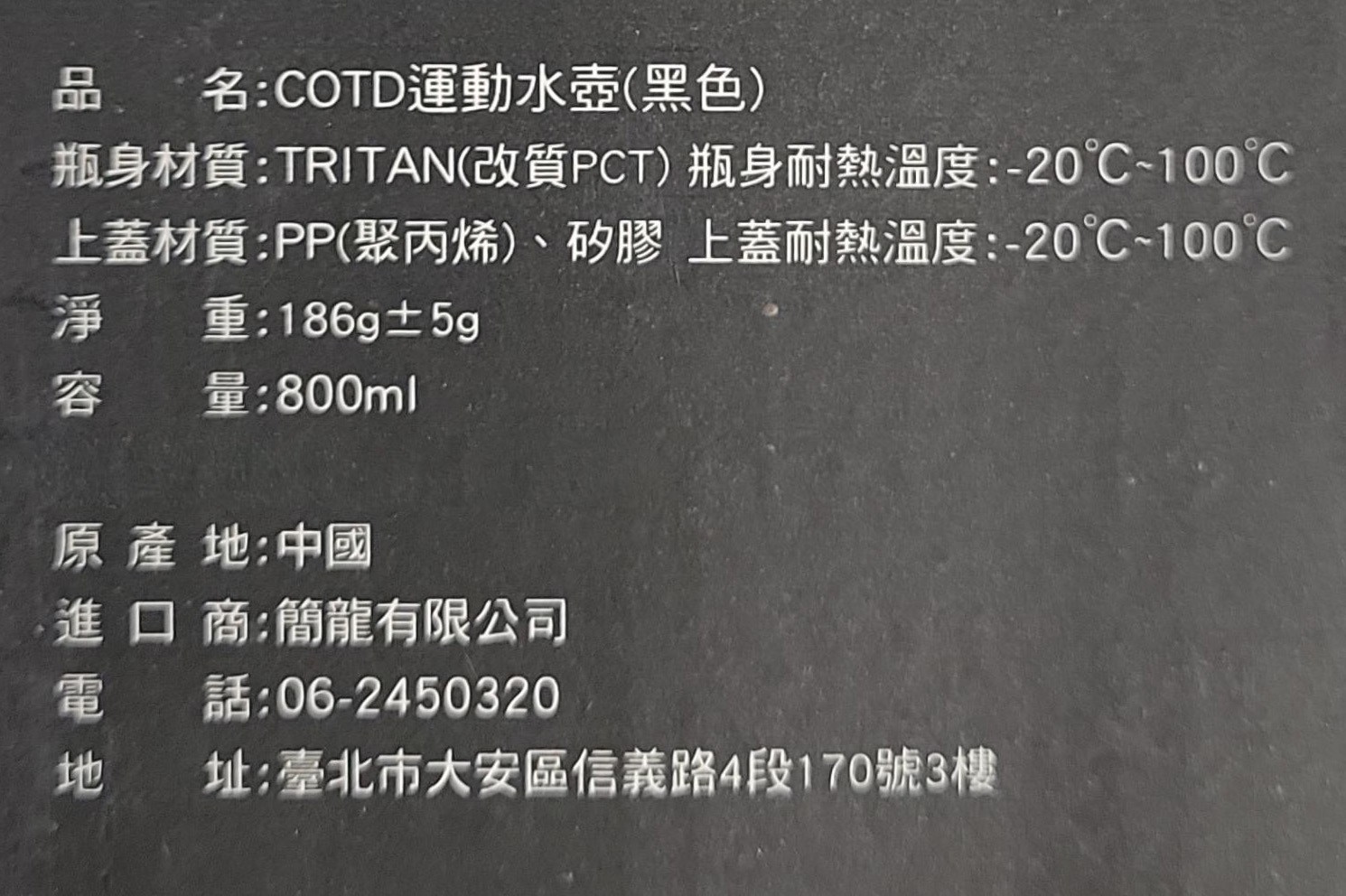 這款COTD黑色運動水壺是您健身和戶外活動的理想選擇。容量為800ml,足夠您在運動時補充水分,保持活力。水壺採用TRITAN材質,耐熱溫度範圍為-20°C至100°C,讓您安心使用。簡約時尚的設計,搭配便攜掛繩,方便攜帶。無論是跑步、瑜珈還是登山,COTD運動水壺都能滿足您的需求,讓您隨時隨地享受健康生活。