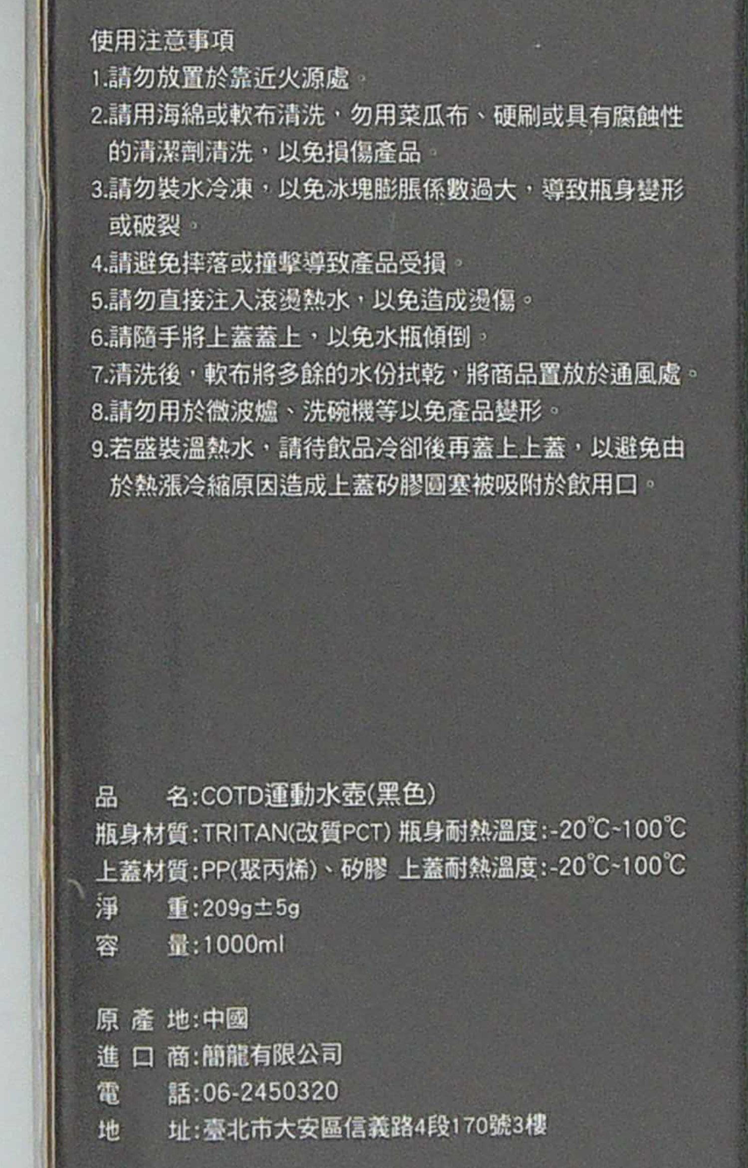 - 採用TRITAN材質,堅固耐用且不含雙酚A,飲用更安心,讓您放心使用。