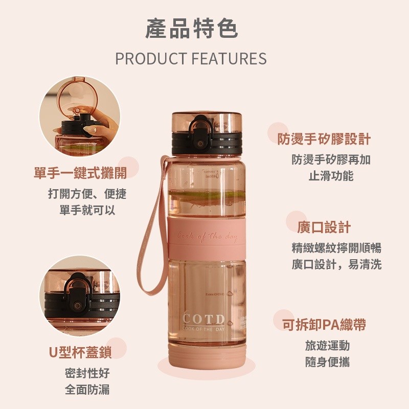 - 輕巧便攜設計,讓您隨時隨地補充水分,享受健康生活,運動健身更加輕鬆。