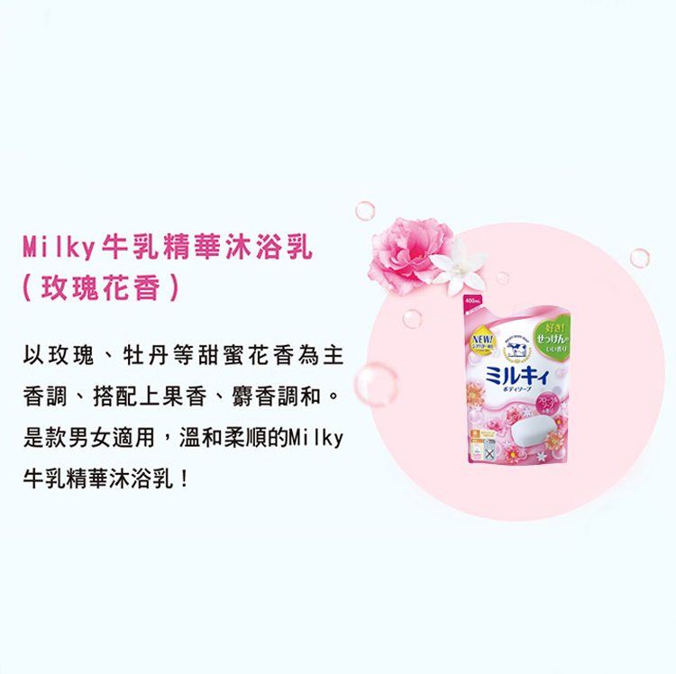 - 牛乳精華沐浴乳,玫瑰香氛讓您沉浸在奢華沐浴體驗中,享受極致的放鬆時刻。