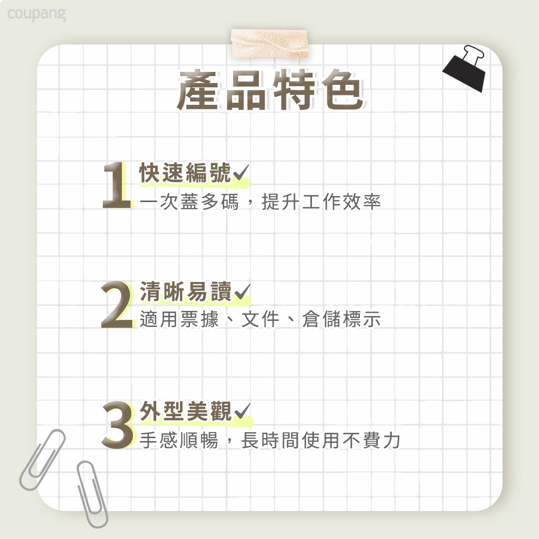 - 八連號碼設計,輕鬆變換數字,滿足多種編碼需求,讓您的工作更加靈活。