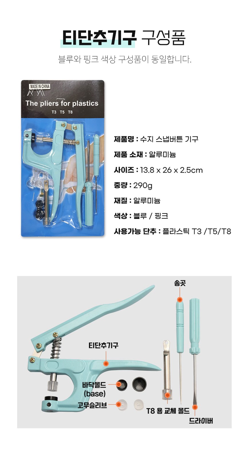 COZY PAPA暗扣鈕扣工具是您手工藝創作的得力助手。這款工具採用耐用的鋁材質製成,配備多種尺寸的底部模具,適用於T3、T5、T8等規格的塑膠暗扣。符合人體工學設計,使用起來非常簡單方便,即使是初學者也能輕鬆上手。無論是製作嬰兒服裝、口水巾還是其他手工藝品,都能讓您事半功倍。藍色和粉紅色可選,為您的工具箱增添色彩。