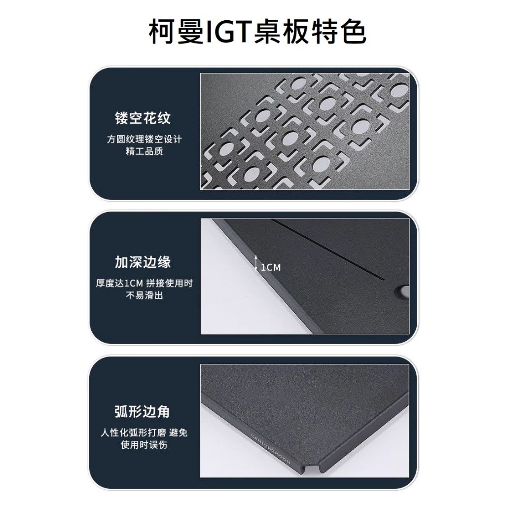 柯曼 IGT 系列黑化一單位方圓天板,為您的戶外廚房增添時尚感。尺寸為 36 x 25 x 1 公分,輕巧易攜帶,重量僅 372 克,採用耐用的鋁合金材質製成,堅固耐用。黑化處理不僅美觀,更提升了防鏽能力,延長使用壽命。獨特的方圓鏤空設計,兼具美觀與實用性,讓您的 IGT 系統更具個性。無論是露營、野餐還是居家使用,柯曼 IGT 系列黑化一單位方圓天板都是您的理想選擇。