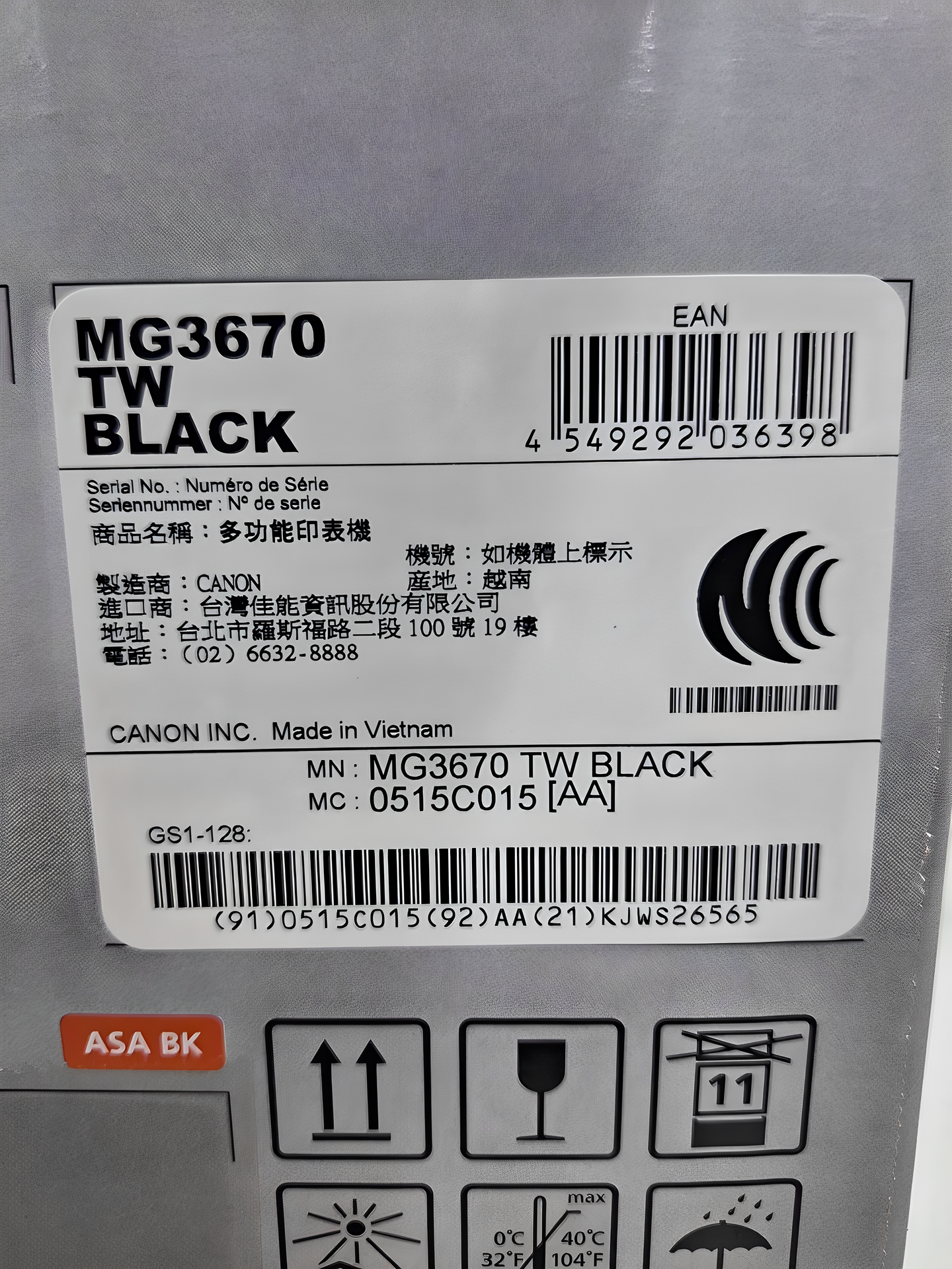 | 原產地/國 | 越南 | BSMI No. | R31219 |
