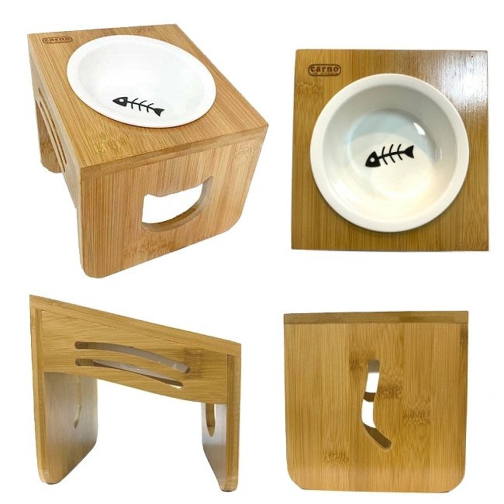 Carno 卡諾 寵物高腳陶瓷碗 高質感木製材質 實木碗架防打翻 穩固耐用 方便好清洗, 白色, 1個