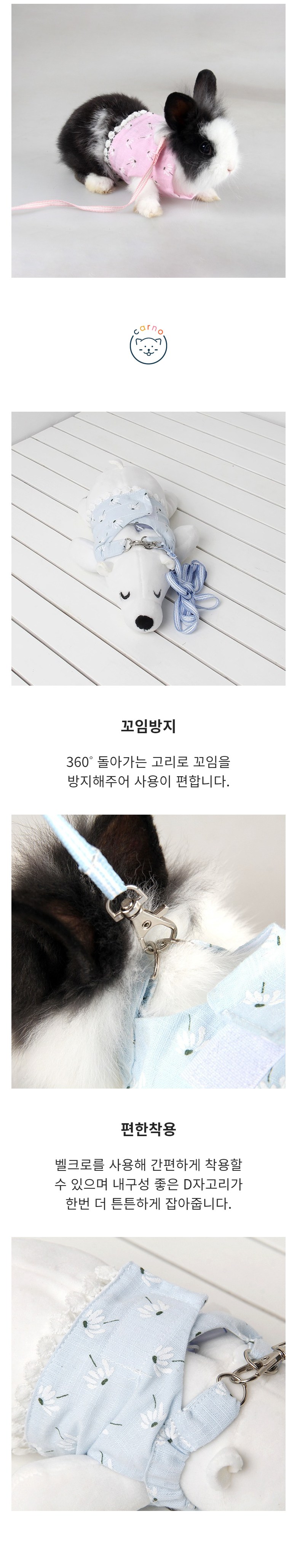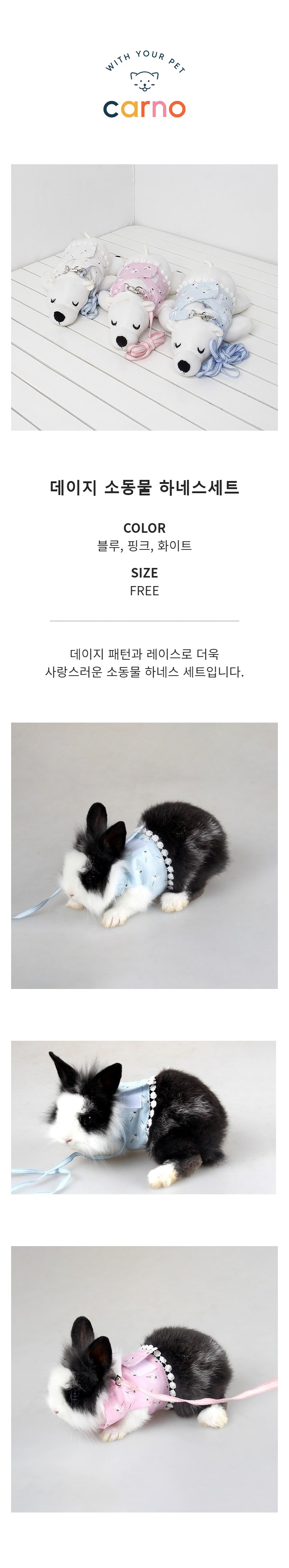 Carno 卡諾 韓國Daisy小寵物胸背帶套組 FREE, 白色, 1套