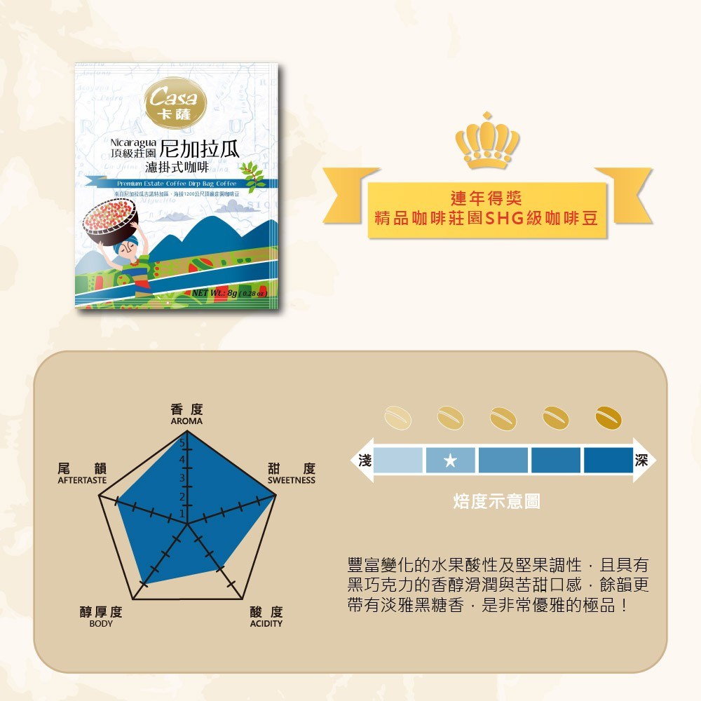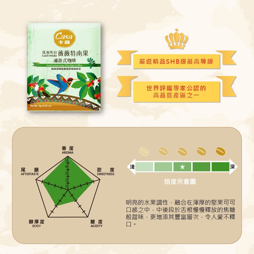 - - 方便的濾掛式設計,讓您隨時隨地輕鬆享受一杯香醇的世界莊園咖啡。