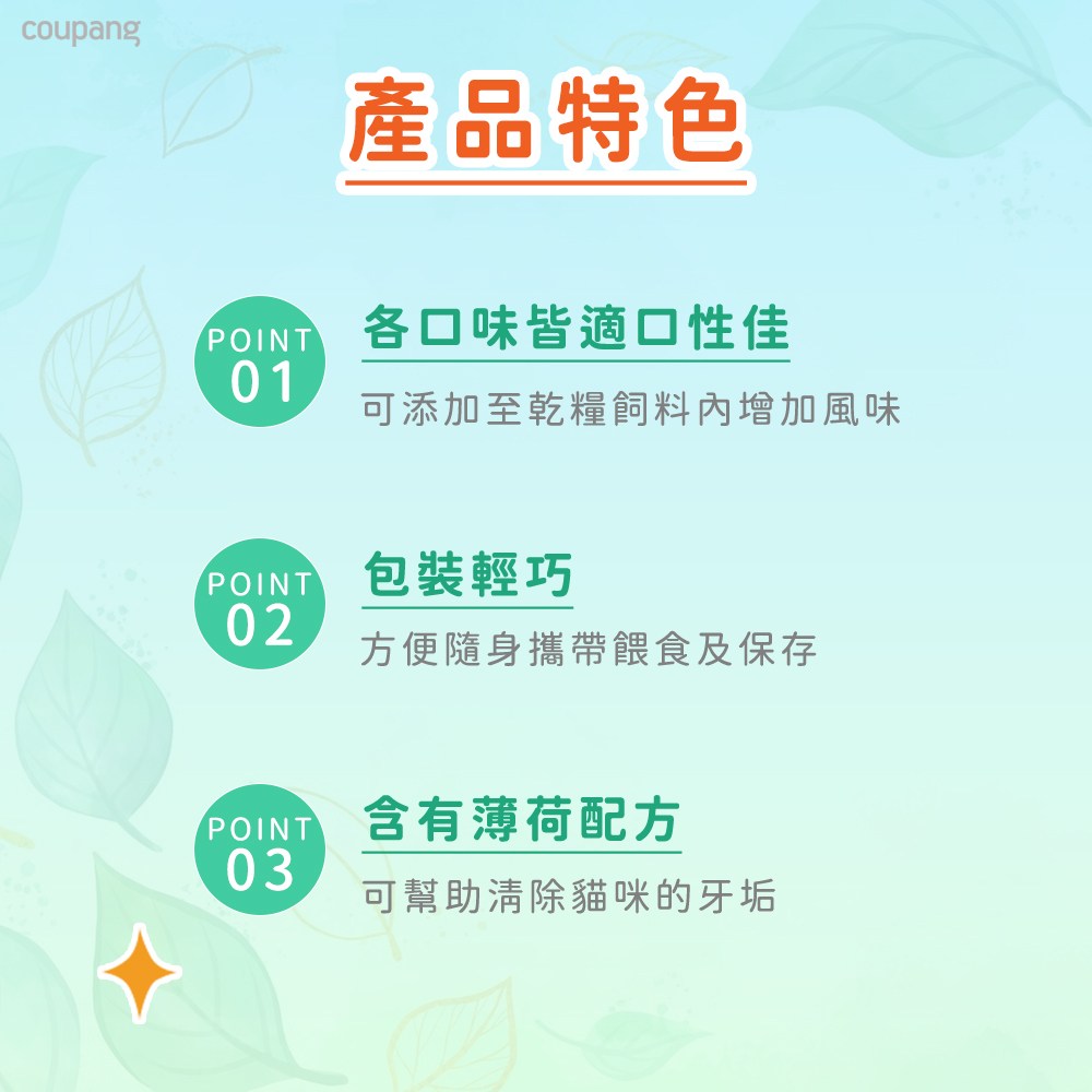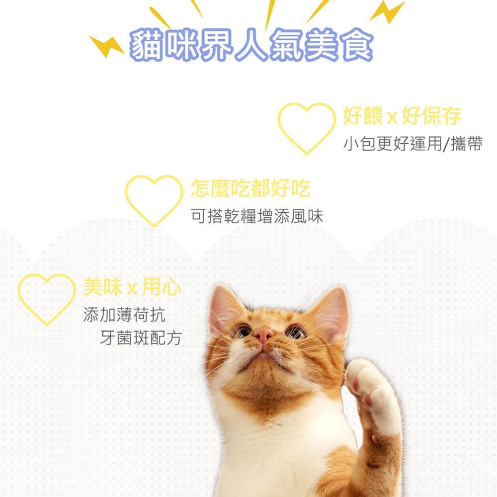 - 添加薄荷配方,清新口氣,讓貓咪隨時保持口腔舒適,享受清新好口氣。