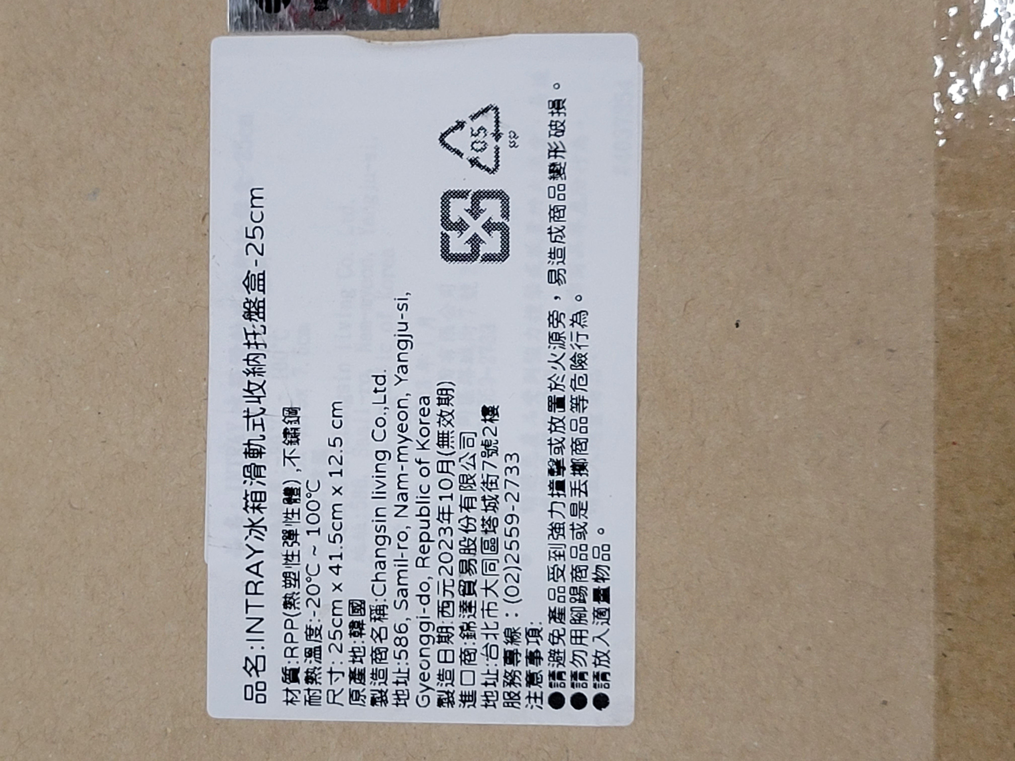 INTRAY冰箱滑軌式收納托盤盒,輕鬆解決冰箱空間不足的問題!這款25公分的收納盒,尺寸為41.5 x 25 x 12.5公分,採用耐用且安全的RPP材質製成,耐熱溫度範圍為-20°C至100°C,讓您安心存放各種食材。滑軌設計讓您輕鬆拉取,方便拿取冰箱深處的物品,告別翻找的困擾。無論是蔬果、飲料或零食,都能整齊收納,讓冰箱井然有序,提升食材保鮮度。韓國製造,品質保證,讓您的冰箱收納更有效率!