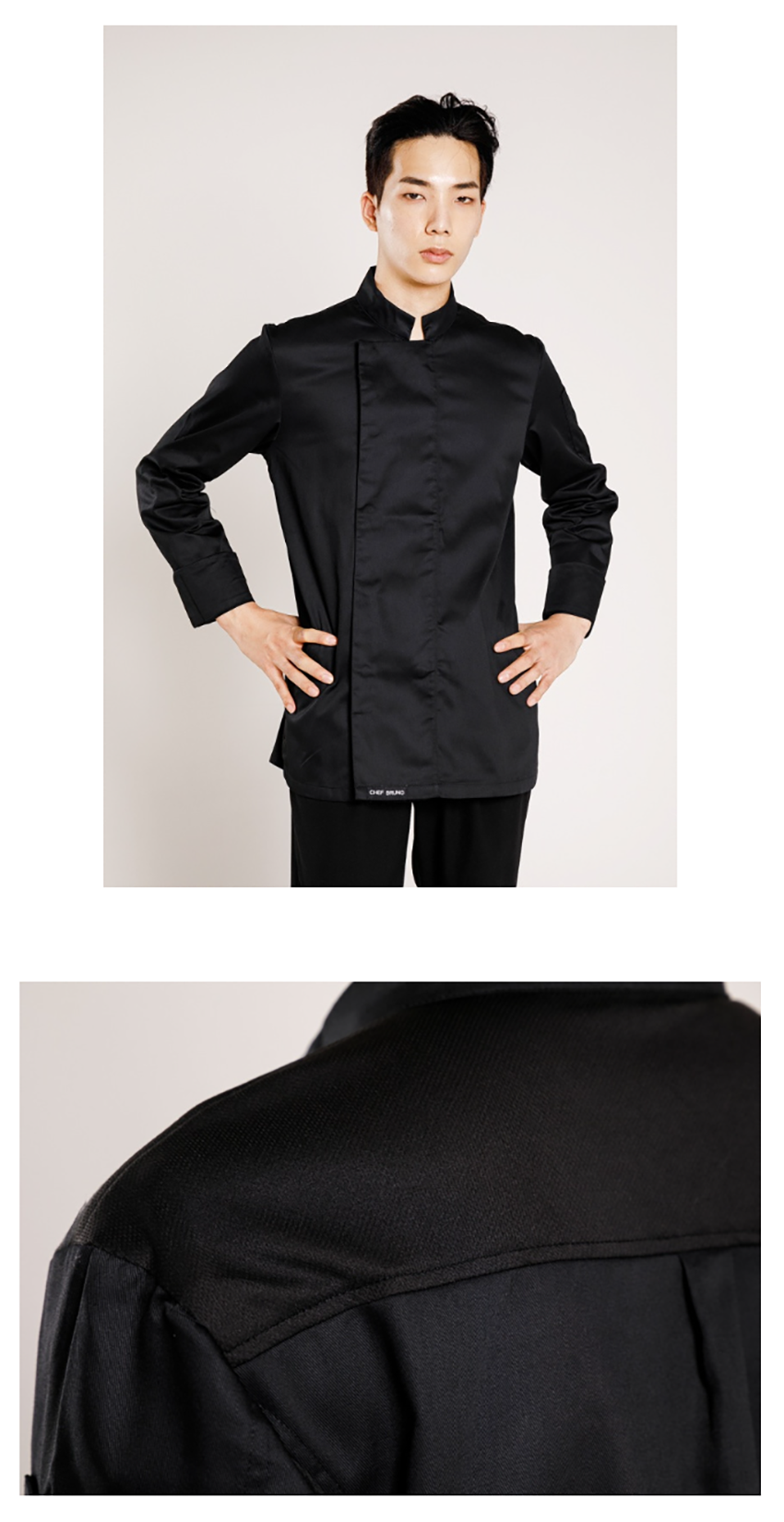 ChefBruno 長袖炊具採用親膚透氣材質,讓廚師在長時間工作下也能保持舒適乾爽。其耐磨耐用特性,即使經過多次洗滌也能維持良好狀態,展現專業形象。人體工學設計提供絕佳的活動性,讓廚師在廚房中能靈活自如地應對各種挑戰。這款廚師服不僅注重舒適度,更兼顧耐用性與專業形象,是廚師們的理想選擇。讓您在廚房中也能穿得舒適有型,展現專業自信。