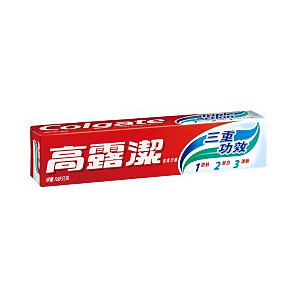 高露潔三重功效含氟牙膏,為您提供全方位的口腔護理。這款160克的牙膏,以其清涼薄荷的香味,讓您每次刷牙後都能感受到清新舒爽的口氣。三重功效配方,減少牙菌斑,並潔白牙齒,讓您擁有健康亮麗的笑容。含氟配方,強化琺瑯質,保護牙齒免受酸蝕侵害。每天使用高露潔三重功效牙膏,讓您的口腔保持清潔、健康和清新。