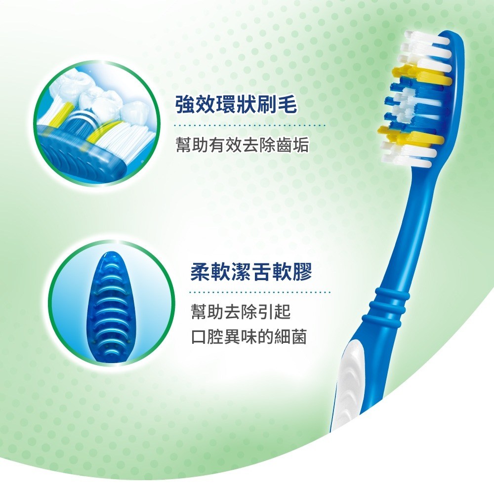 - 高露潔牙刷採用柔軟刷毛,溫和呵護牙齦,刷牙時倍感舒適,減少刺激。
